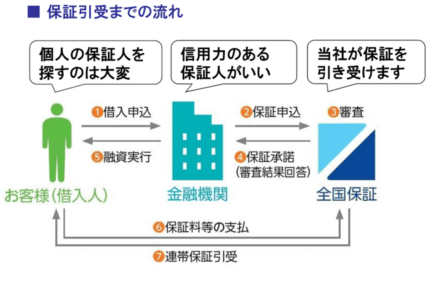 全国保証は、住宅ローンを借り入れるときの連帯保証を担保してくれる会社です。「個人が信用力のある保証人を探すのは大変なので、そこを審査して引き受けますよ」というサービスを提供しています。