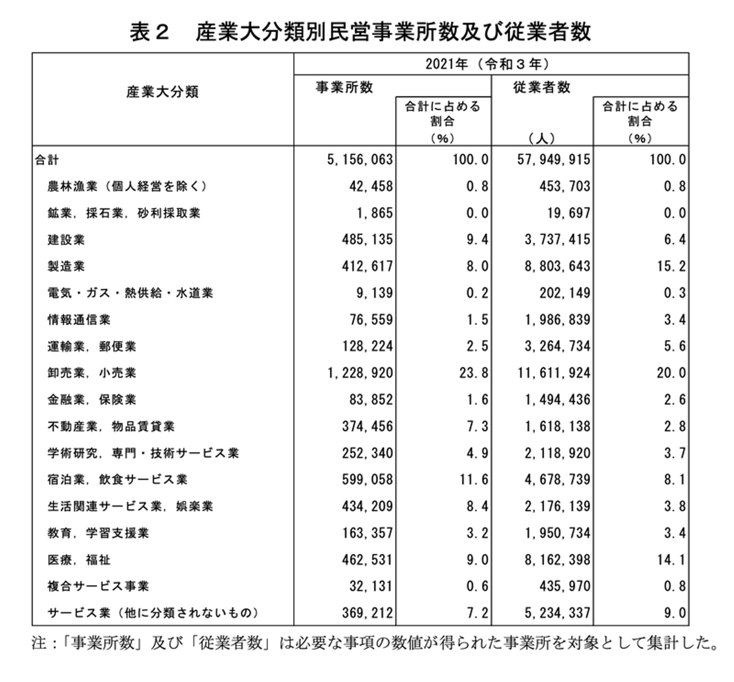 それは「経済センサス」というもの。経産省が調査している統計資料で、日本の各産業ごとの売上規模や事業所数、従業員数などを見ることができます。(ご興味ある方はここから見れます〜!)