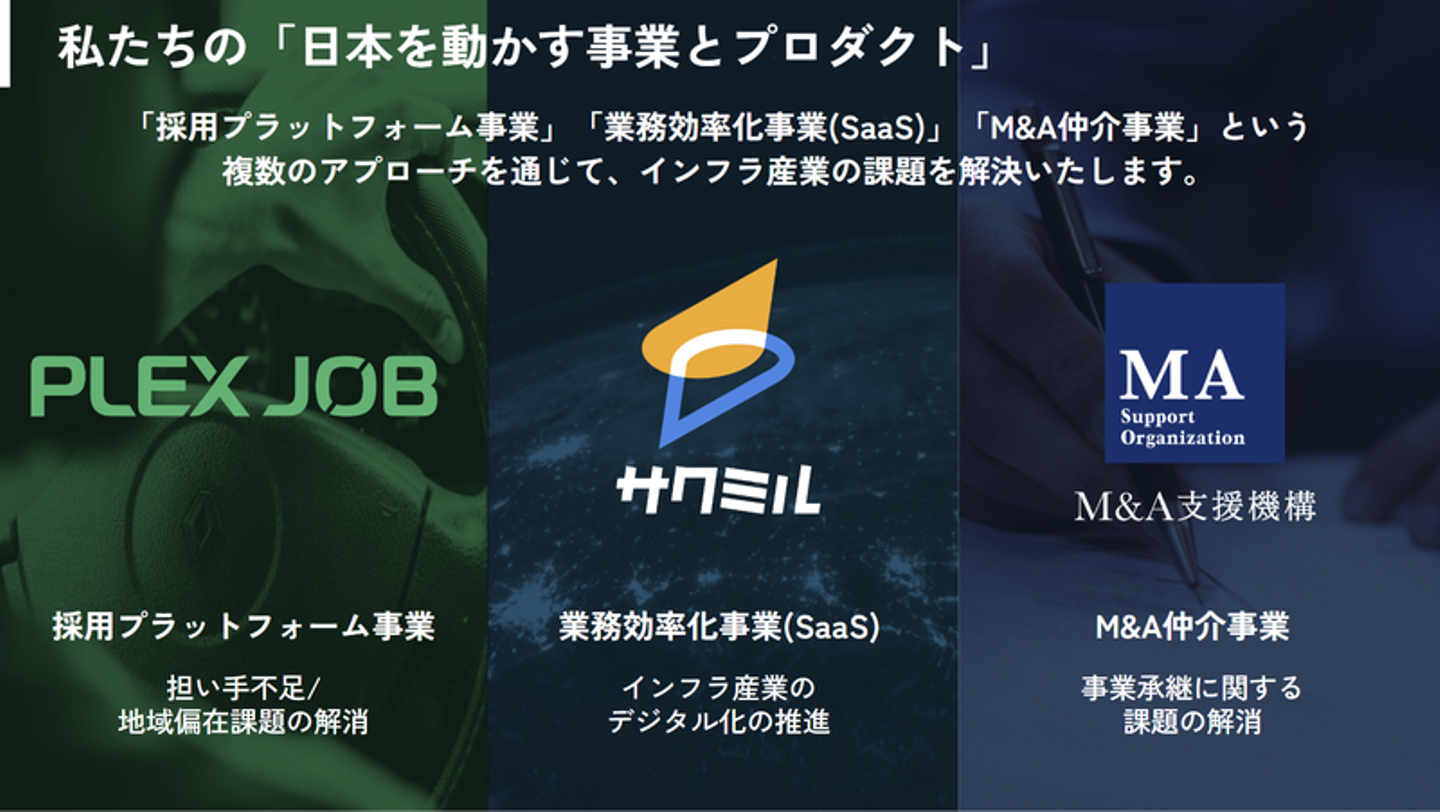 このような経緯で、僕らは「物流業界の人材紹介」で起業し、そこからインフラ産業、SaaS、M&A仲介へと、徐々に領域を広げてきました。