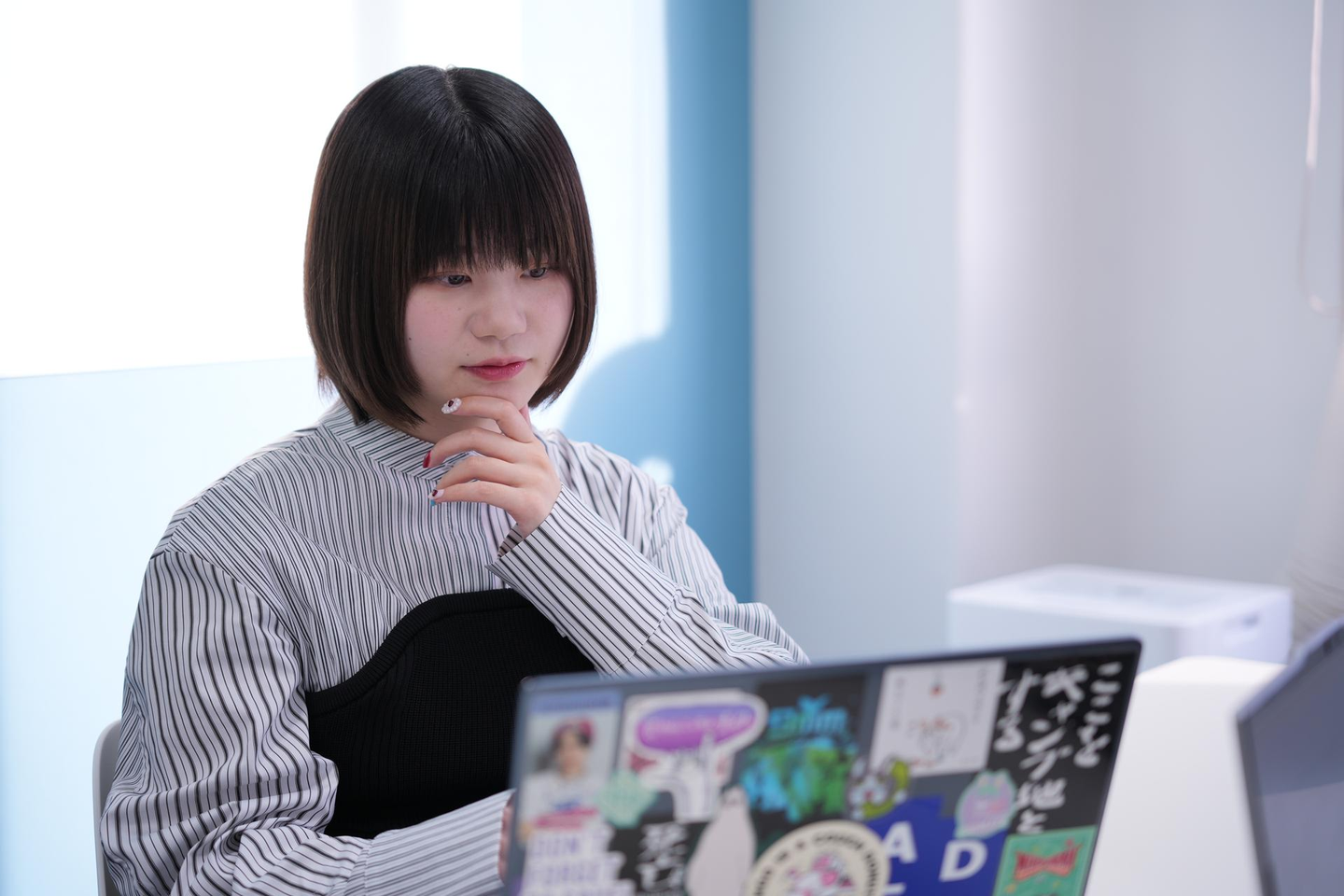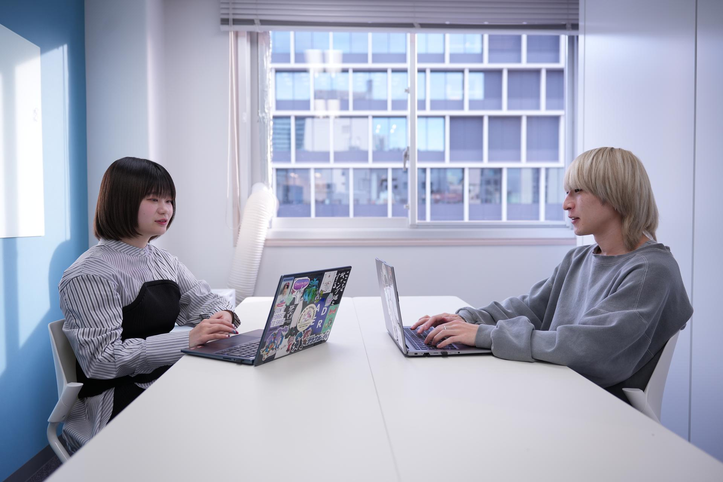 Plottの面接は私服OKなので、好きなコンテンツのTシャツを着てきたり、缶バッジを付けてきたりする方もいらっしゃって、そうした自己表現は大歓迎です。素のキャラクターを隠さないで、飾らないまま来ていただけたほうが嬉しいです。
