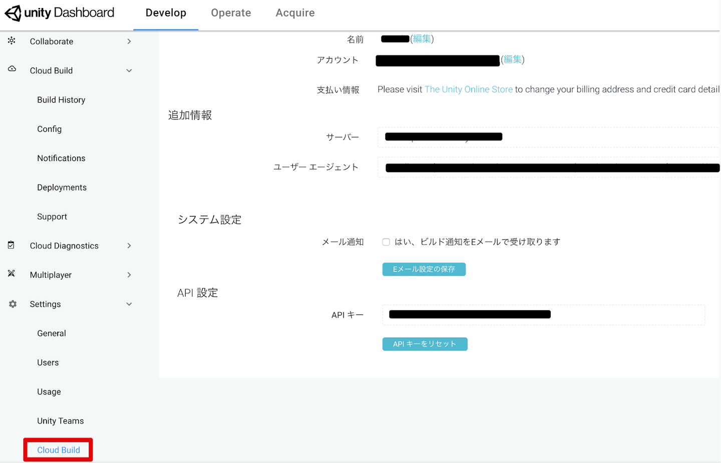 apikey="xxxxxxxxxxxxxxxxxxxxxxxxxxxx" →Unity Cloud Buildのアカウント作成時のAPI Key