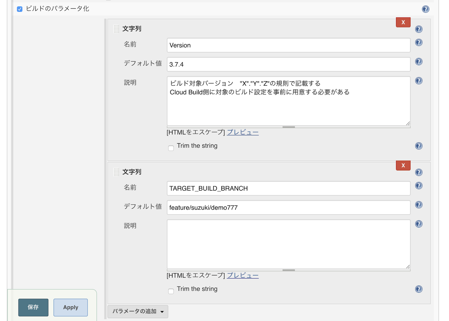 「古いビルド破棄」にチェックを行い、各種設定します。