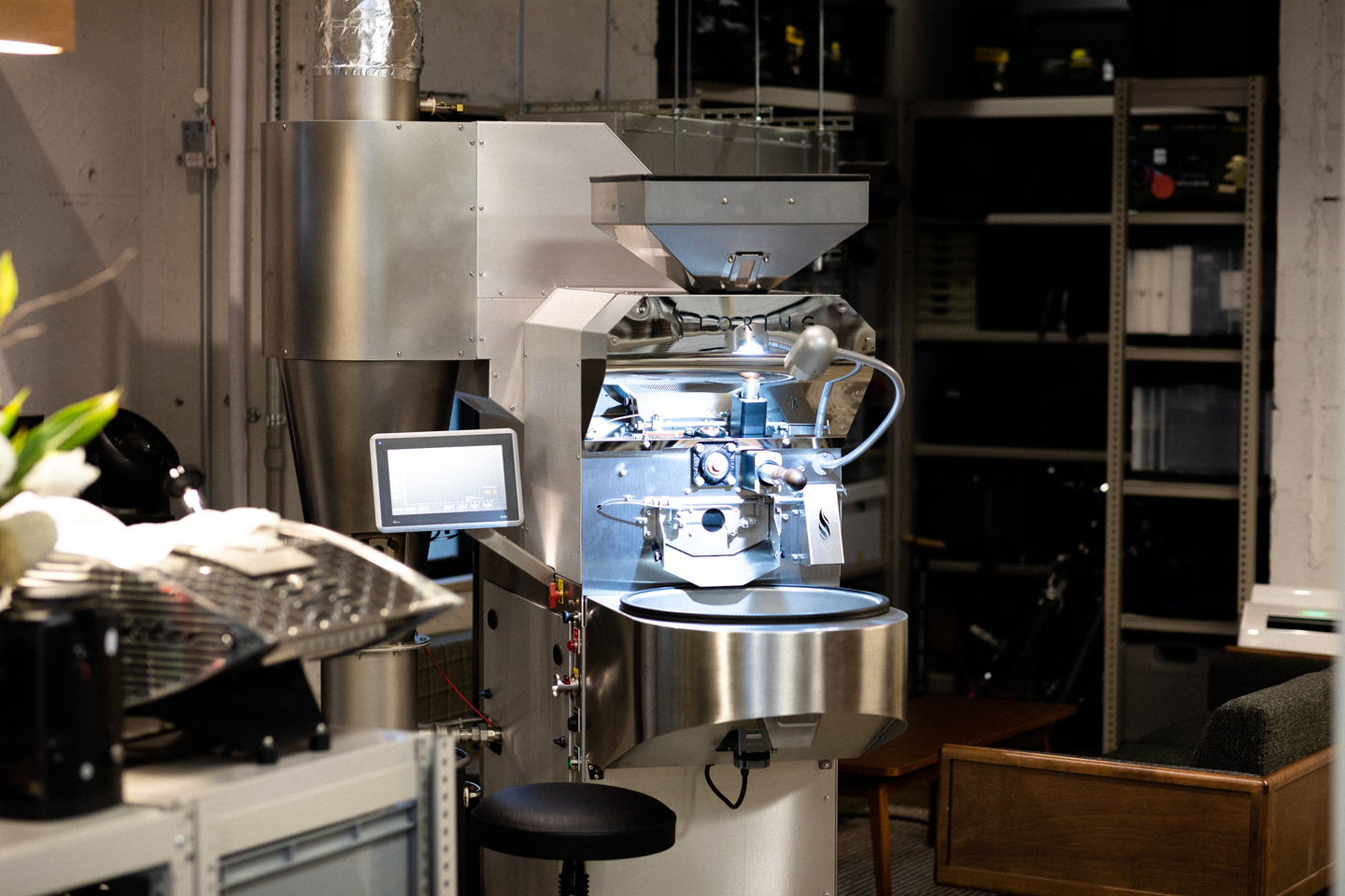 こんな感じの店舗の後ろには、最新型の焙煎機が鎮座しています。PostCoffeeのコーヒー豆はすべてこちらの焙煎機で毎日丁寧に焙煎しています。