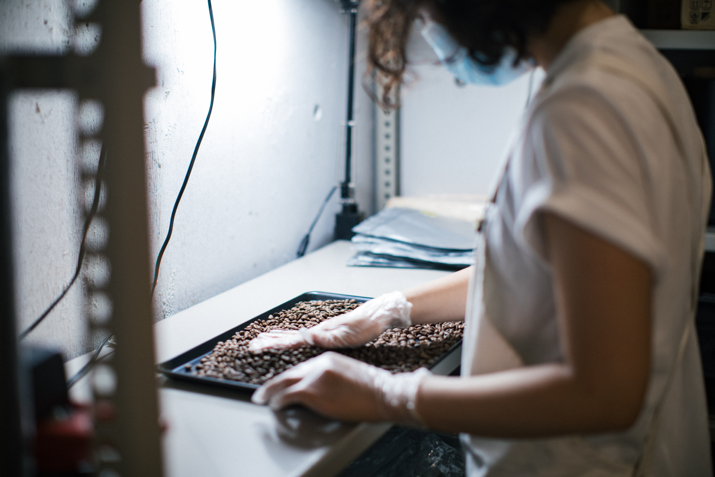 焼いた豆は、未熟な豆や欠点豆を除くためにハンドピック作業をします。より美味しいコーヒーをお届けするため、すべて目視、手作業で行っています。