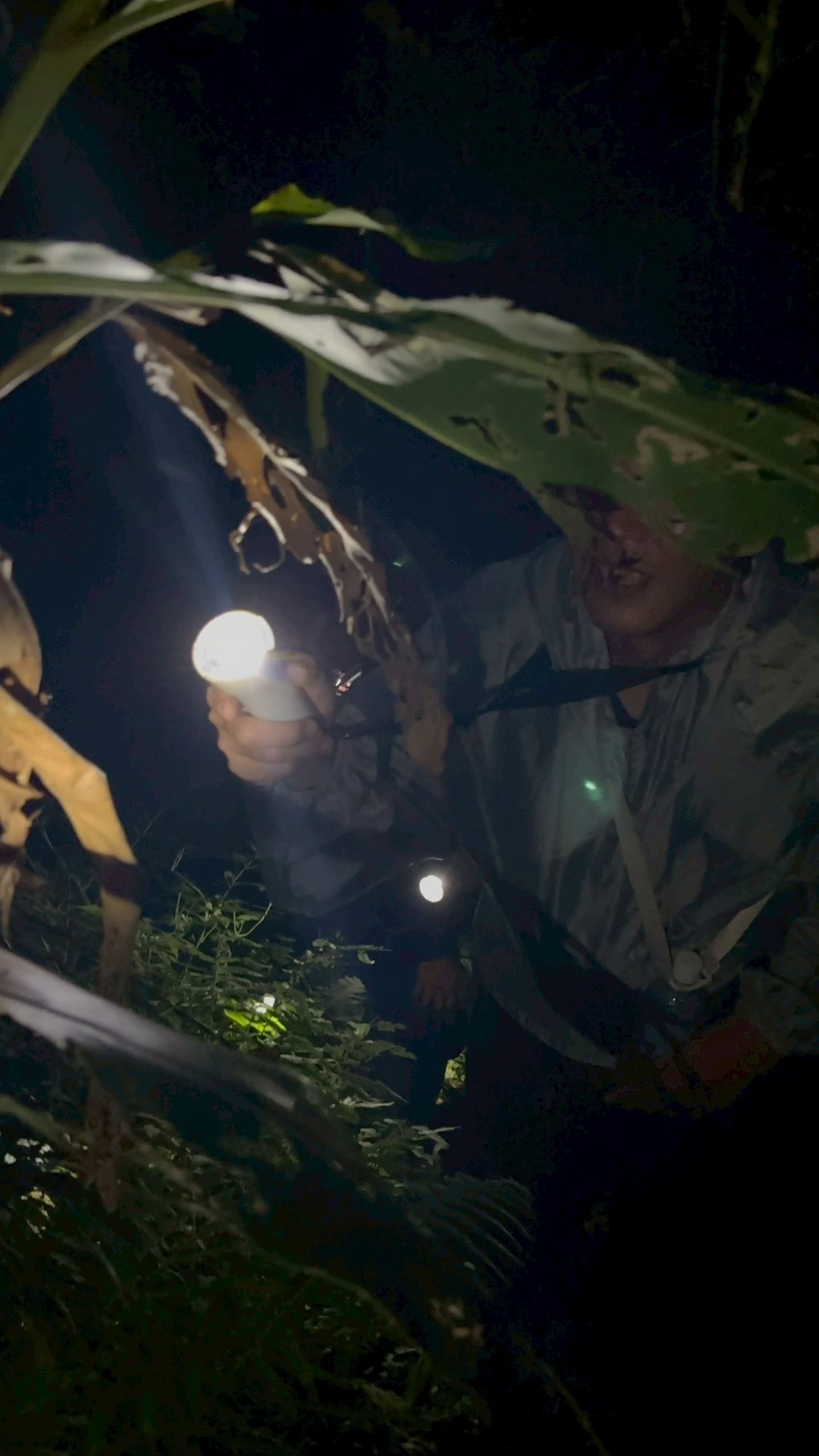 真っ暗な中、懐中電灯で足元を照らしながら、本物(ガチ)のジャングル探検🎶