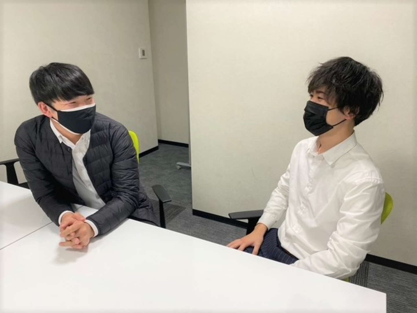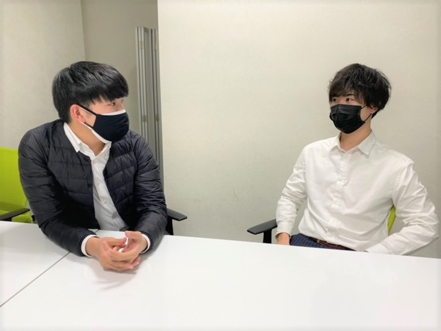 山森君(写真:右)は、2021年4月に新卒として入社、入社前のインターンも参加し、今は立派な営業マンに‼
