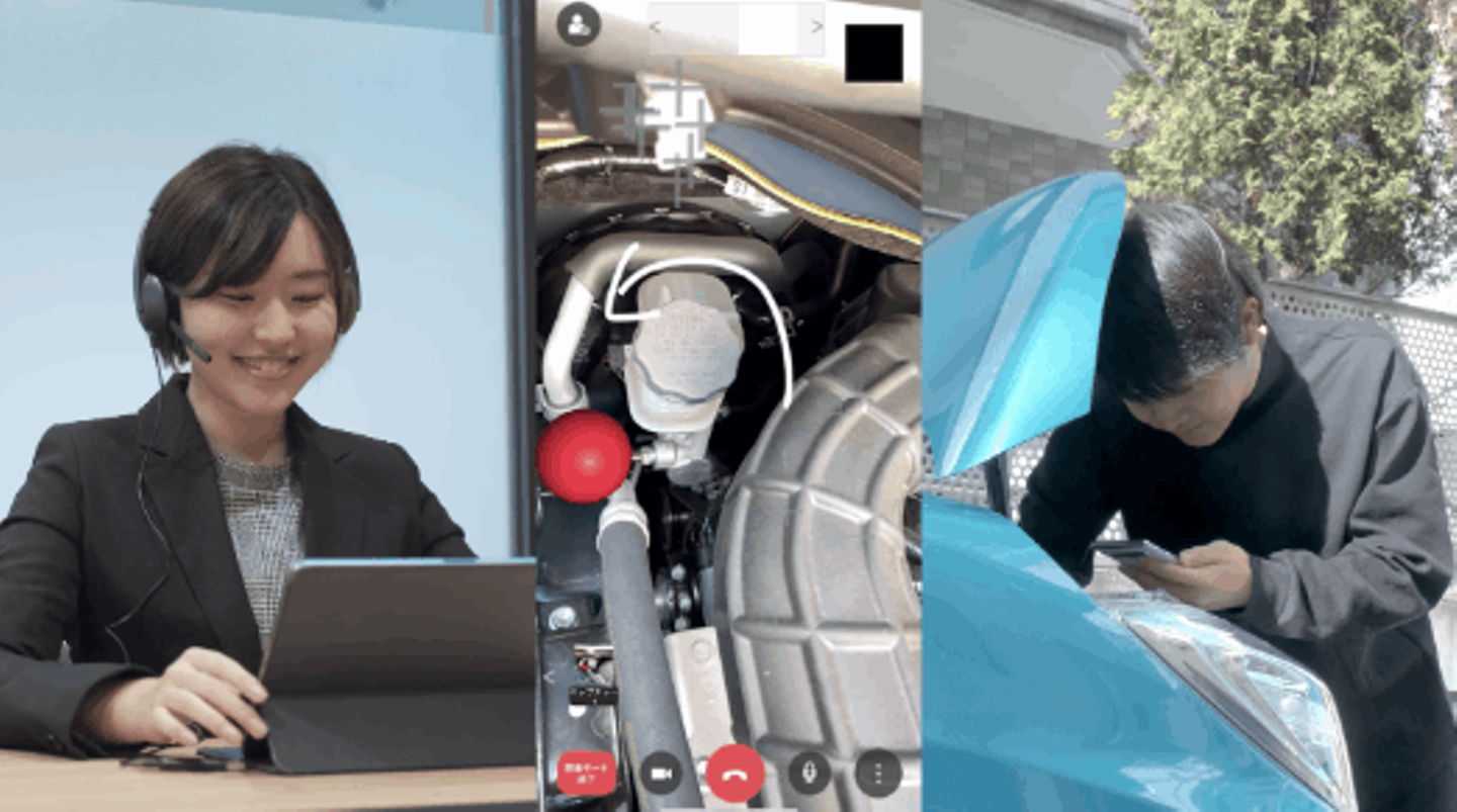具体的には、上記の写真の例のように、ビデオ通話を行いながら実線を描いたり、指示者の手を透かすことで円滑な指示を行うことができます。いわば「手取り足取りをリモート化」するサービスです。