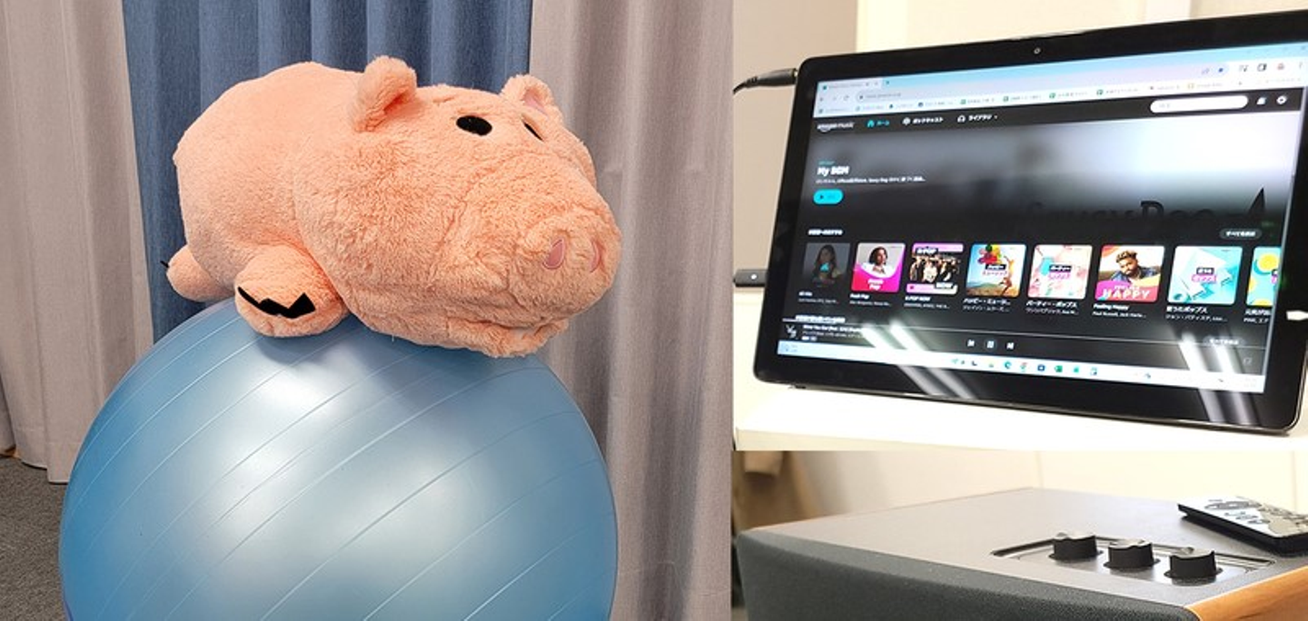 静かすぎると空気が重たくなってしまうので、集中力アップのためにも専用スピーカーでBGMを流しています。