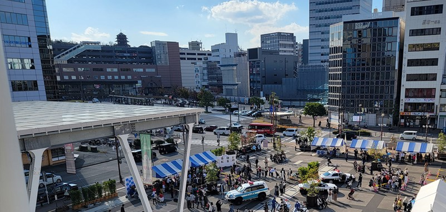 事務所ビルのすぐ横にはイベントステージ常設の「祝祭の広場」があり、週末は毎週のように様々なイベントが開催され賑わっています。