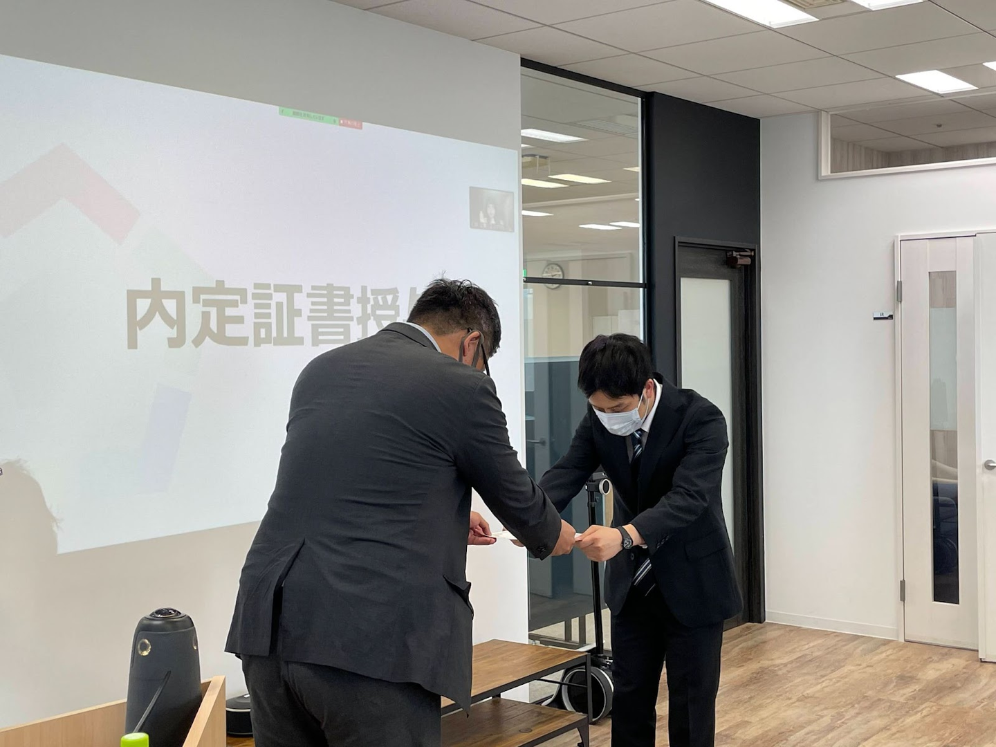続いて、COO佐々木による内定証書授与。