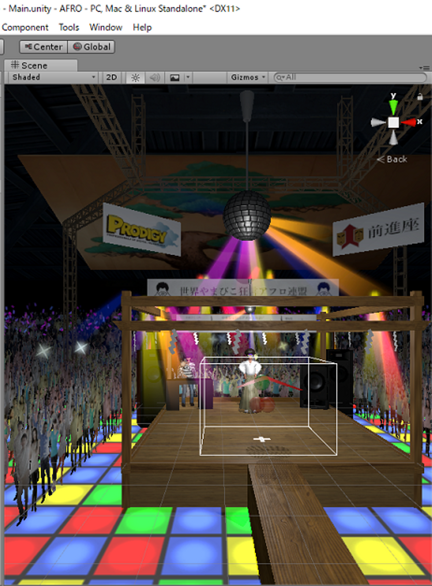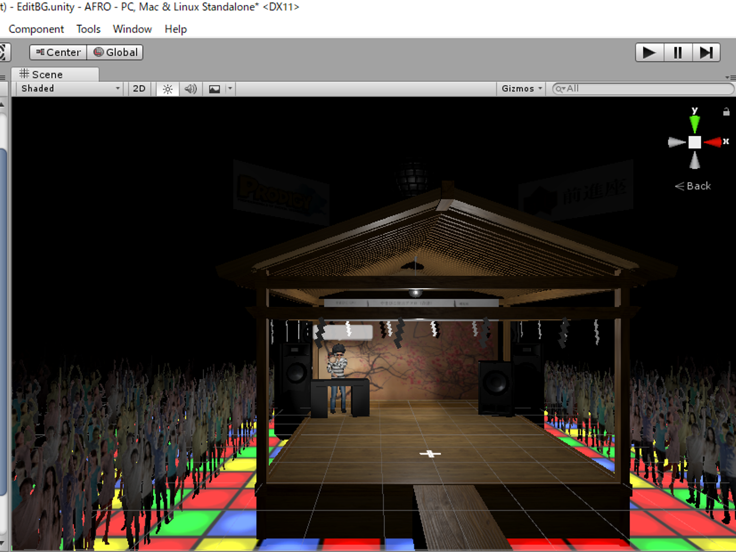 いえいえ、ディスコフロアに能舞台を設置しちゃいました。観客もいます。融合なので、どちらもきっちり盛り込んでいます。DJブースも能舞台の中に入れてしまいましたが、DJは何故か鼓を持っています。不思議な世界です(笑)