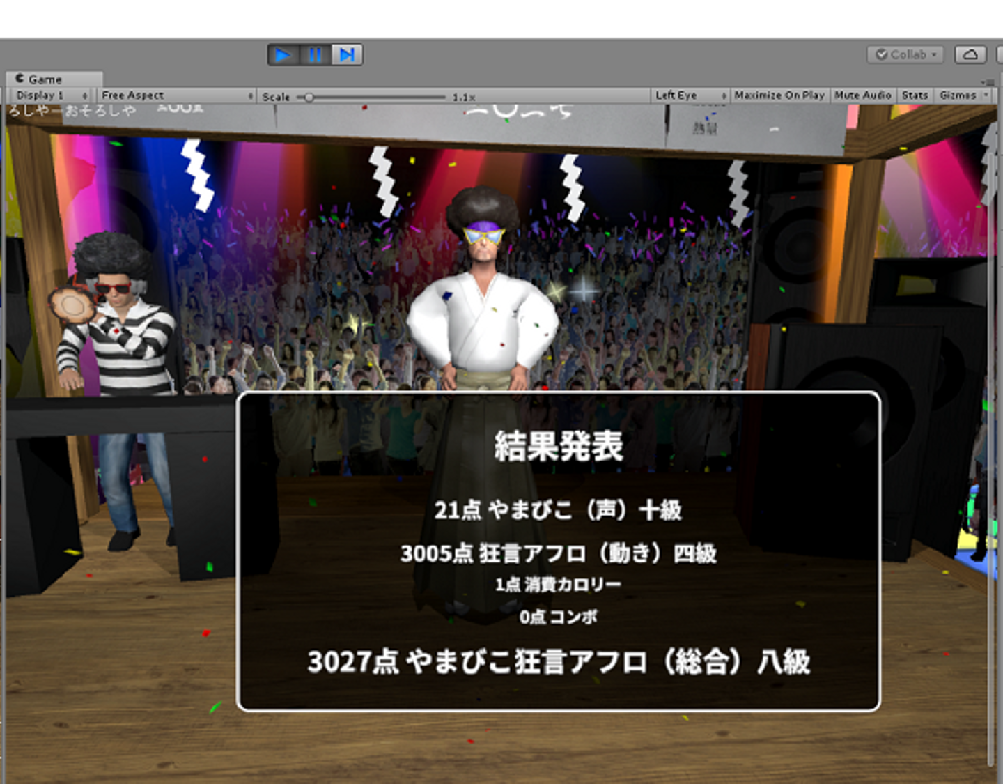 これで【やまびこ狂言アフロ】がほぼ完成しましたので、あとはテストを繰り返し、ゲームの完成度を上げる作業を行ってゲームショウ本番に向けて調整していきます。