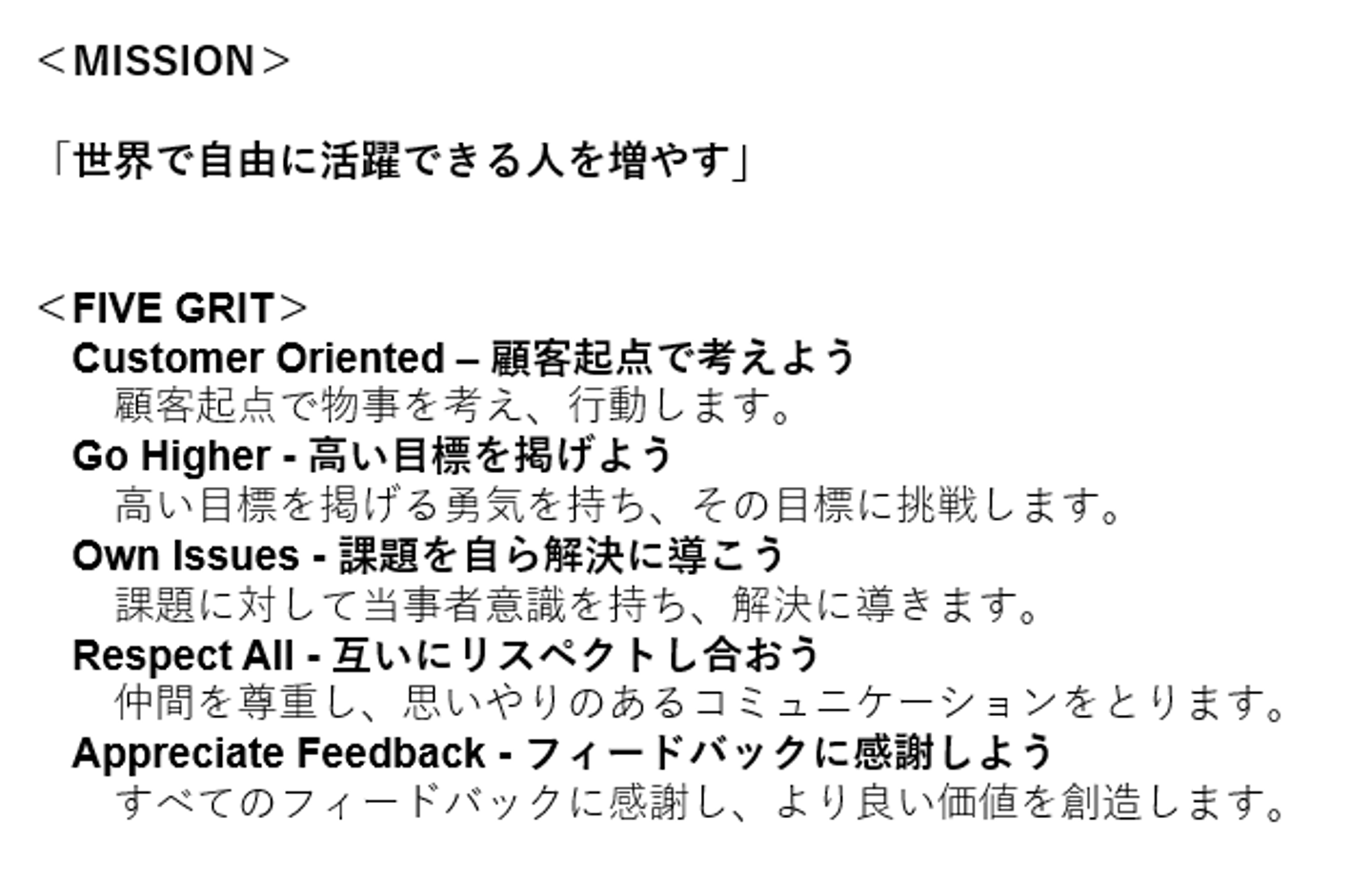 ※FIVE GRIT(弊社の大切にしている5つのValue)