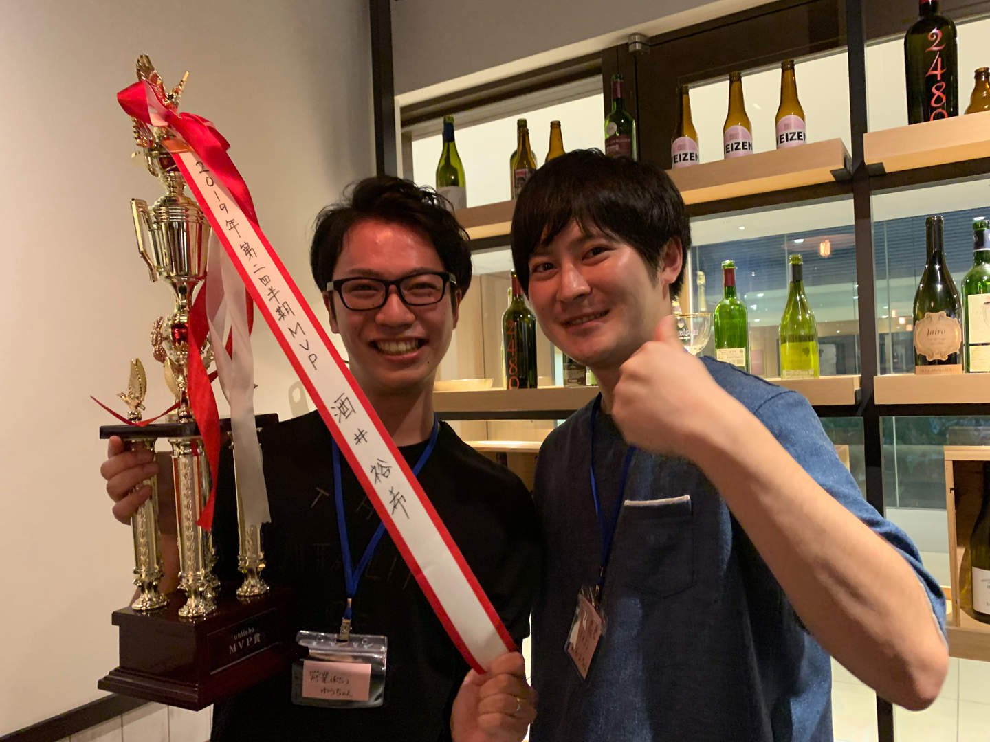 2019年2Qの全社MVPに輝いた酒井と、それを喜ぶ今泉