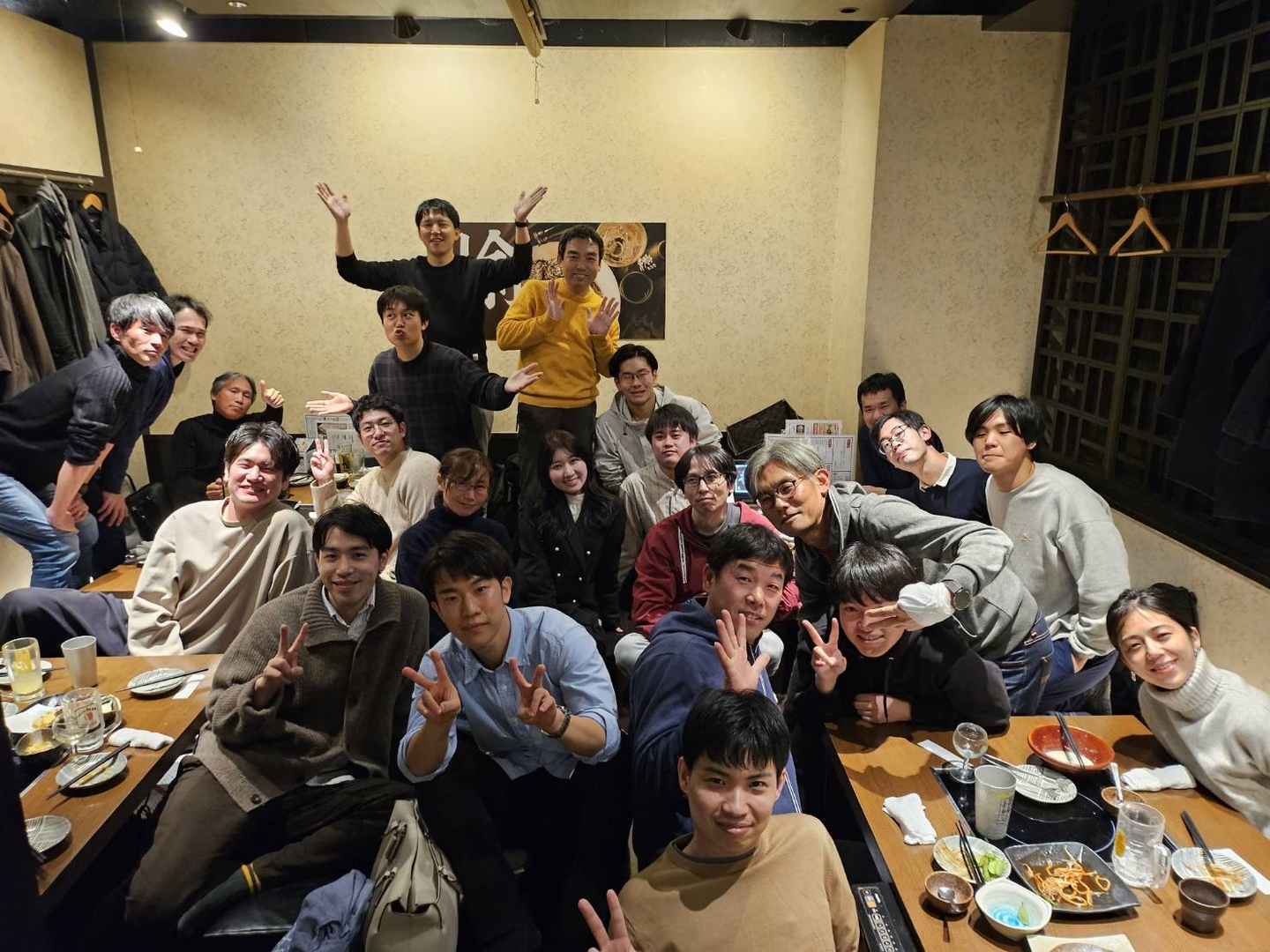 大阪オフィスメンバーでの忘年会の写真。(Y.Wさんは写真真ん中、水色のシャツ)業務外でも皆さん仲が良く、私もよく飲みやサウナなどに連れて行ってもらったりしています。最近では、プロシーズのメンバー8名(内インターン生3名)でキャンプに行きました!めちゃくちゃ楽しかったです!
