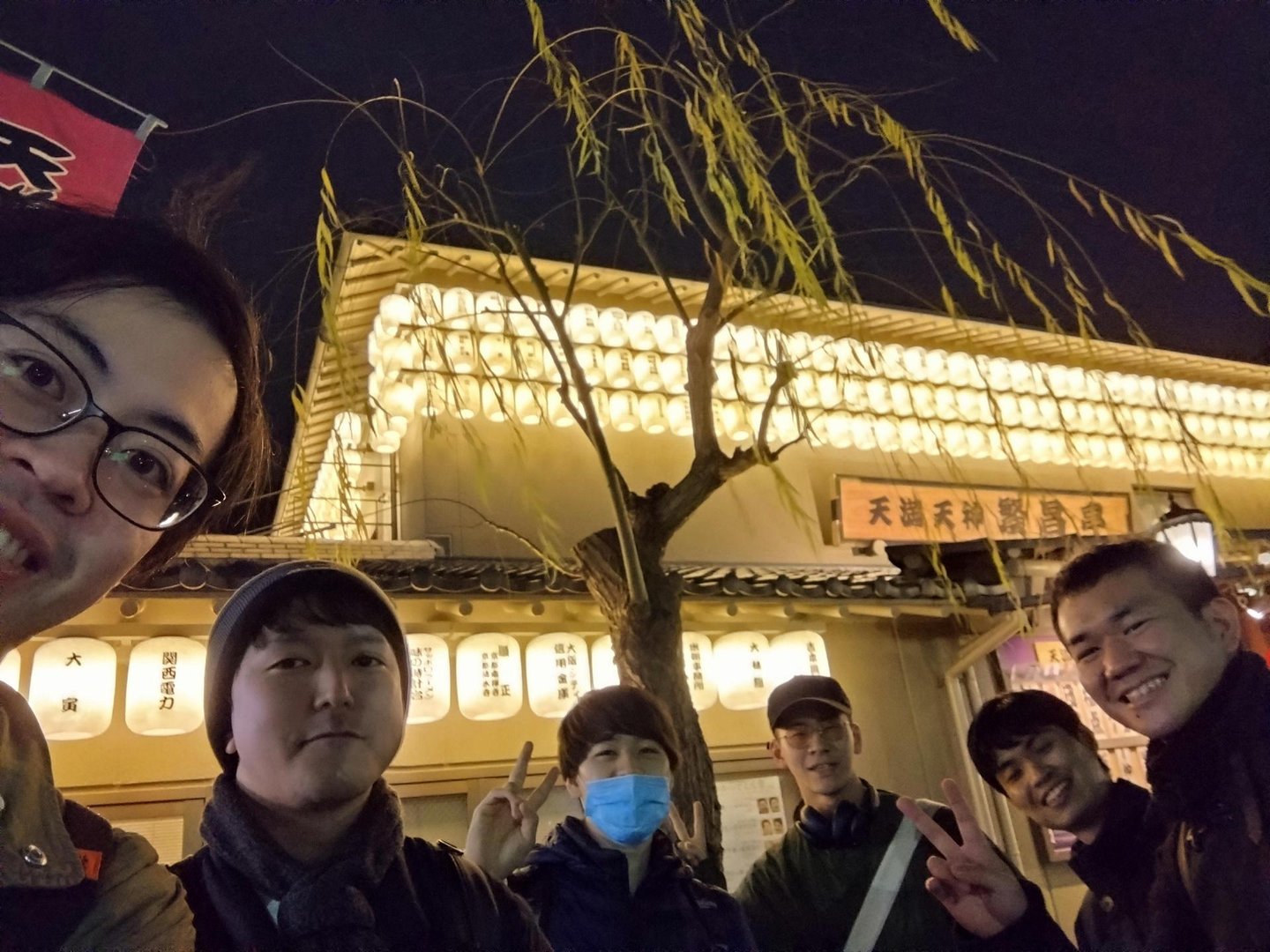 同じ大阪技術部のメンバーと落語を見に行った時の写真。(K.Uさんは写真真ん中)