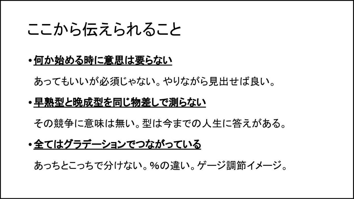最後がクリエイティブディレクターの武藤雄一さんに言われた「冷徹で細かいのがすごく良い」という言葉。僕はすごく細かい部分を気にしちゃうんですけど、一般的にはマイクロマネジメントは良くないと言われることもありますよね。でもそれやめたら三島さんじゃなくなっちゃうよ?と言ってもらって。一般論だけで考えると良くないのかなと感じた言葉でした。