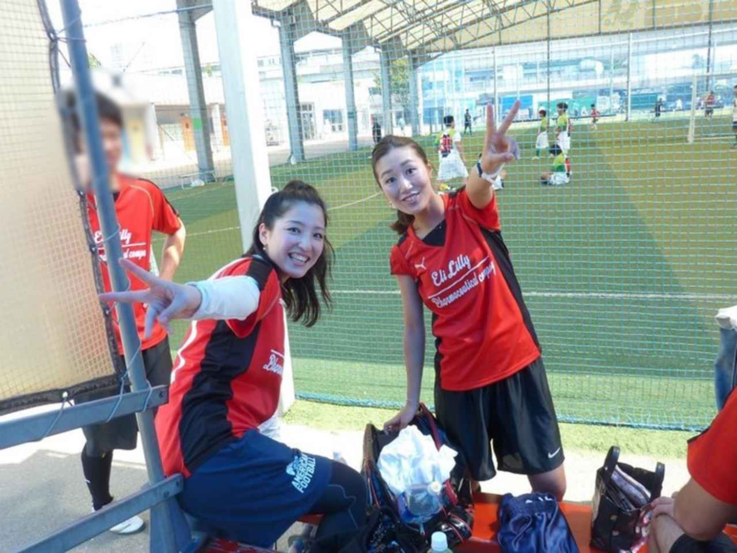 ▲ご提供写真 同僚とフットサルを楽しむ、前職時代の安澤さん(右)