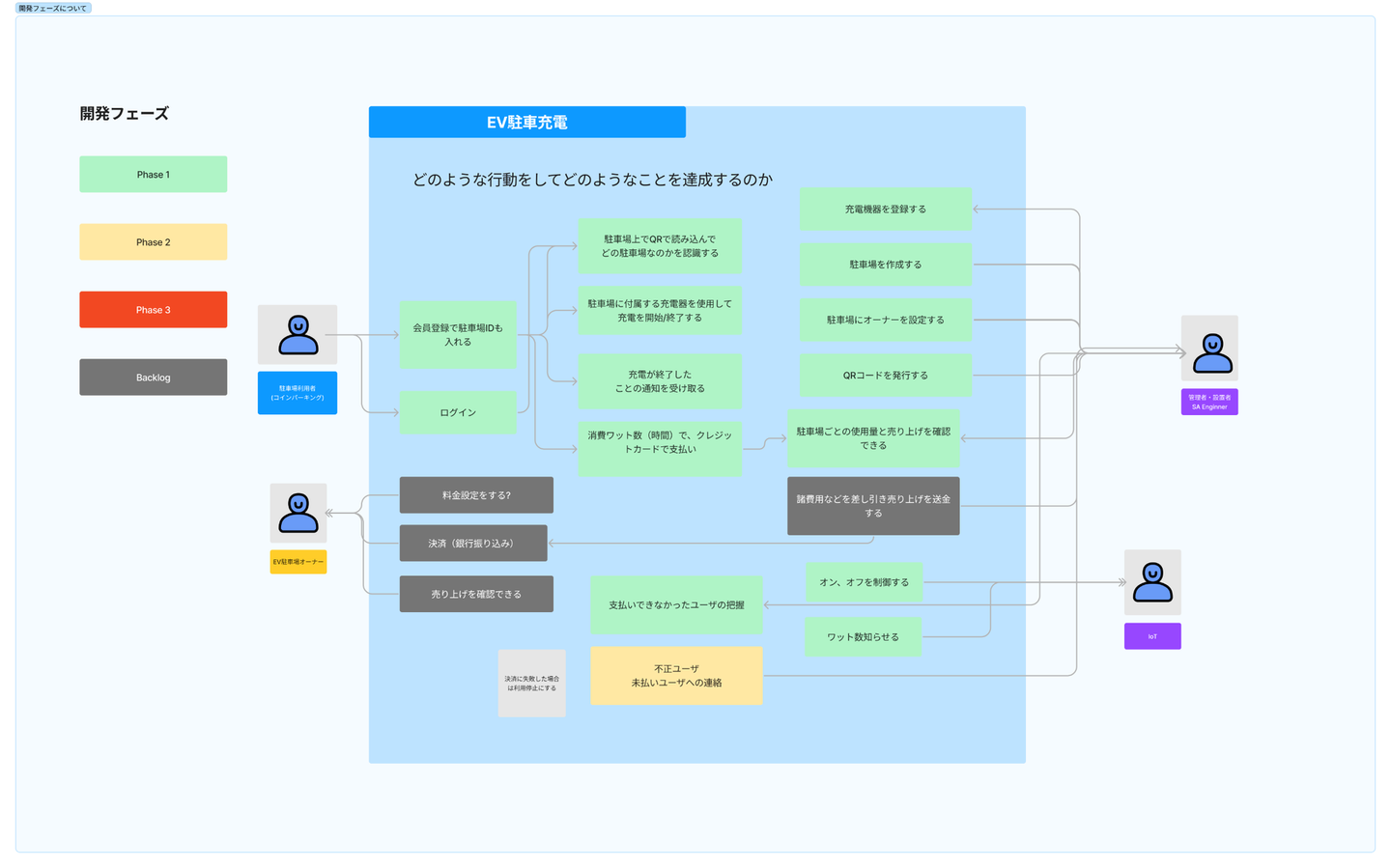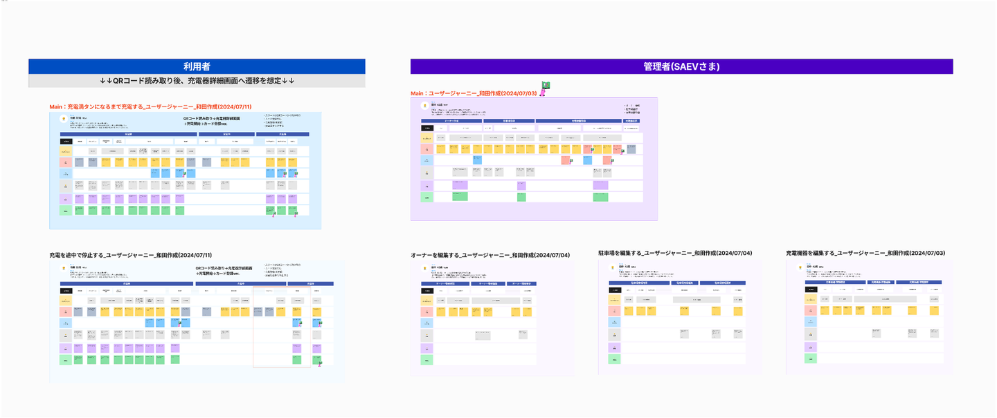 整理したユースケースをもとに、ユーザーの具体的な行動フローを可視化したユーザージャーニーを作成しました。