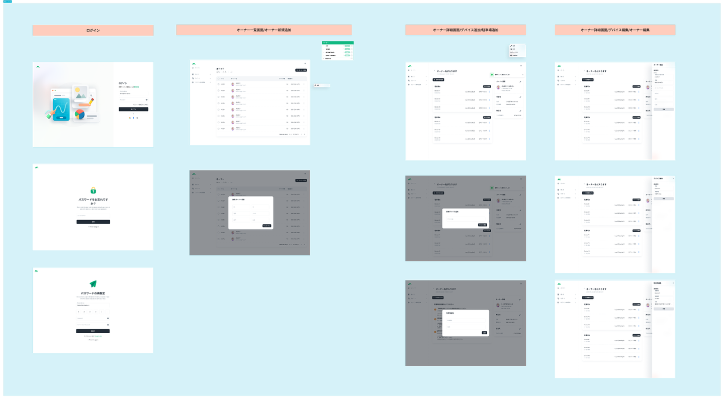 ユーザージャーニーを通じてエスエイエンジニアリング様と認識をすり合わせた内容をもとに、具体的な画面設計に落とし込んだワイヤーフレームを作成しました。