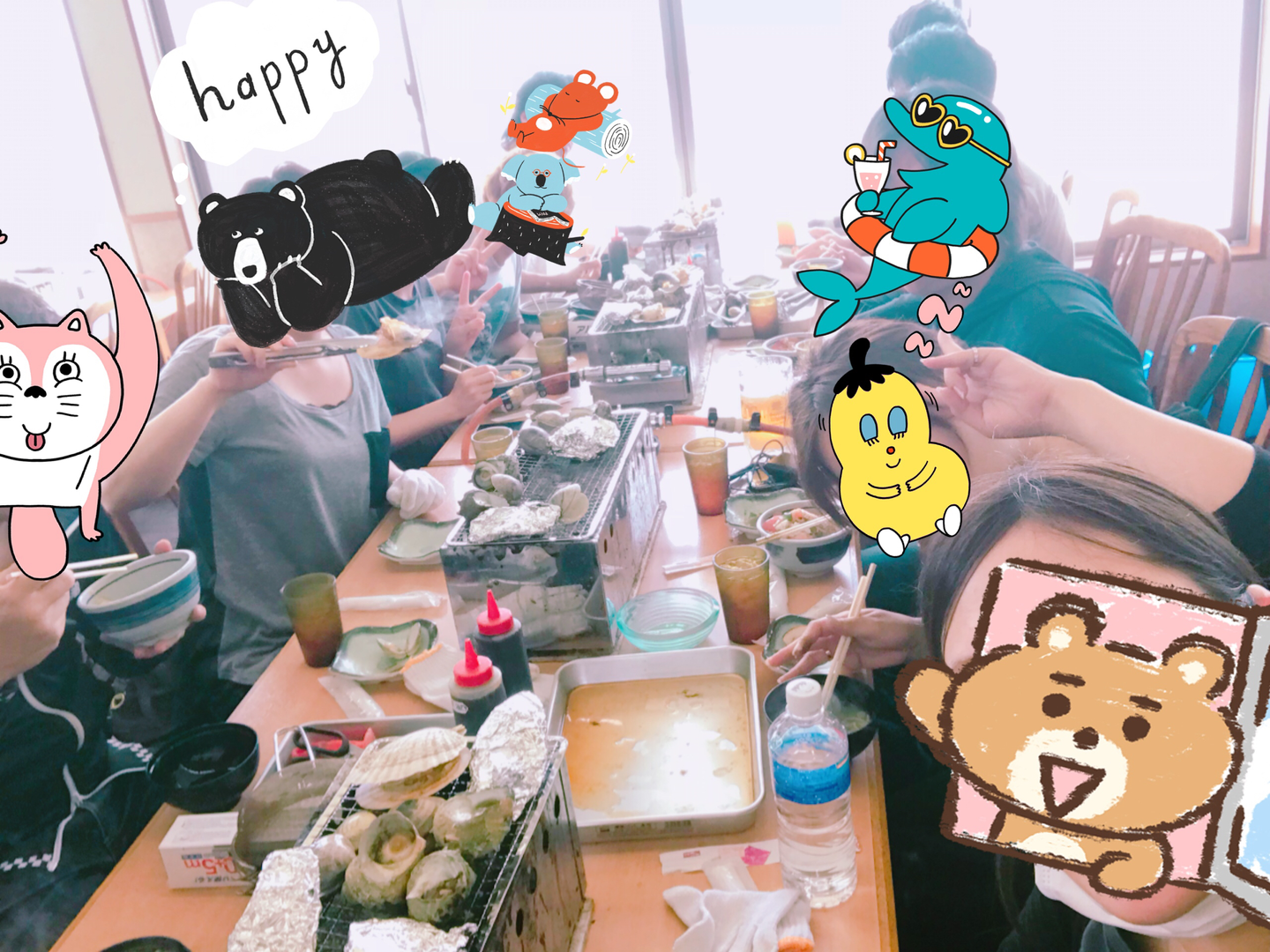 とーーっても美味しかったのですが、この数時間後には昼食として浜焼き食べ放題が用意されていることを考えると、もう少し早い時間に食べればよかったかも…と、買出し班ちょっぴり後悔。