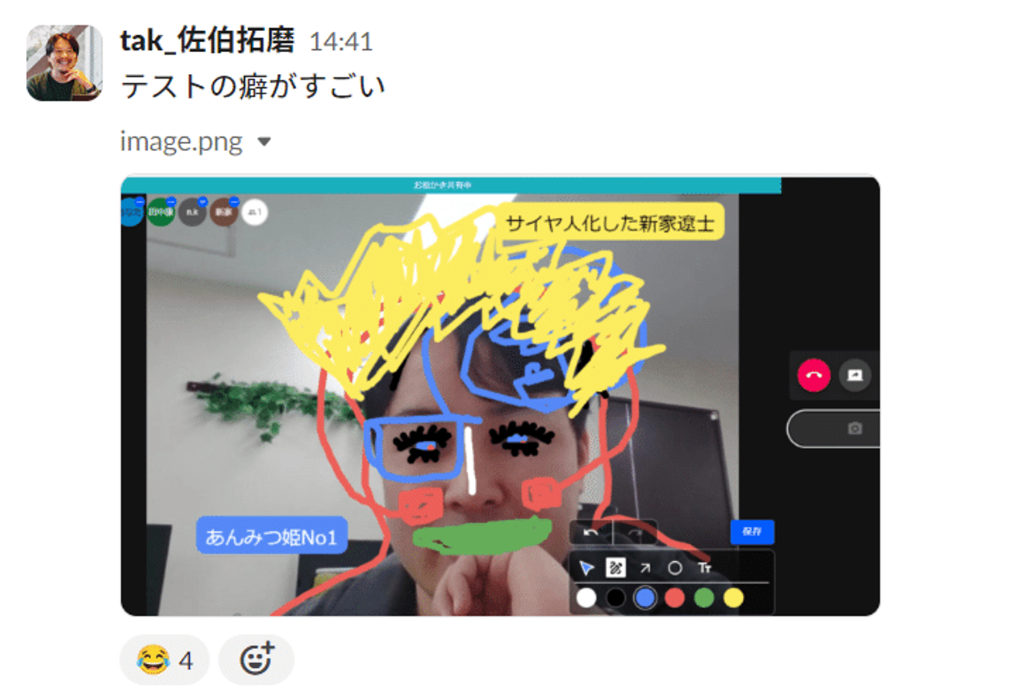 先日プロダクトのテストをする中でこんな感じでお絵描きをされるなどいじられキャラでもあります。業務上はもちろん、そういう精神的な面でもクアンドには欠かせない存在です!