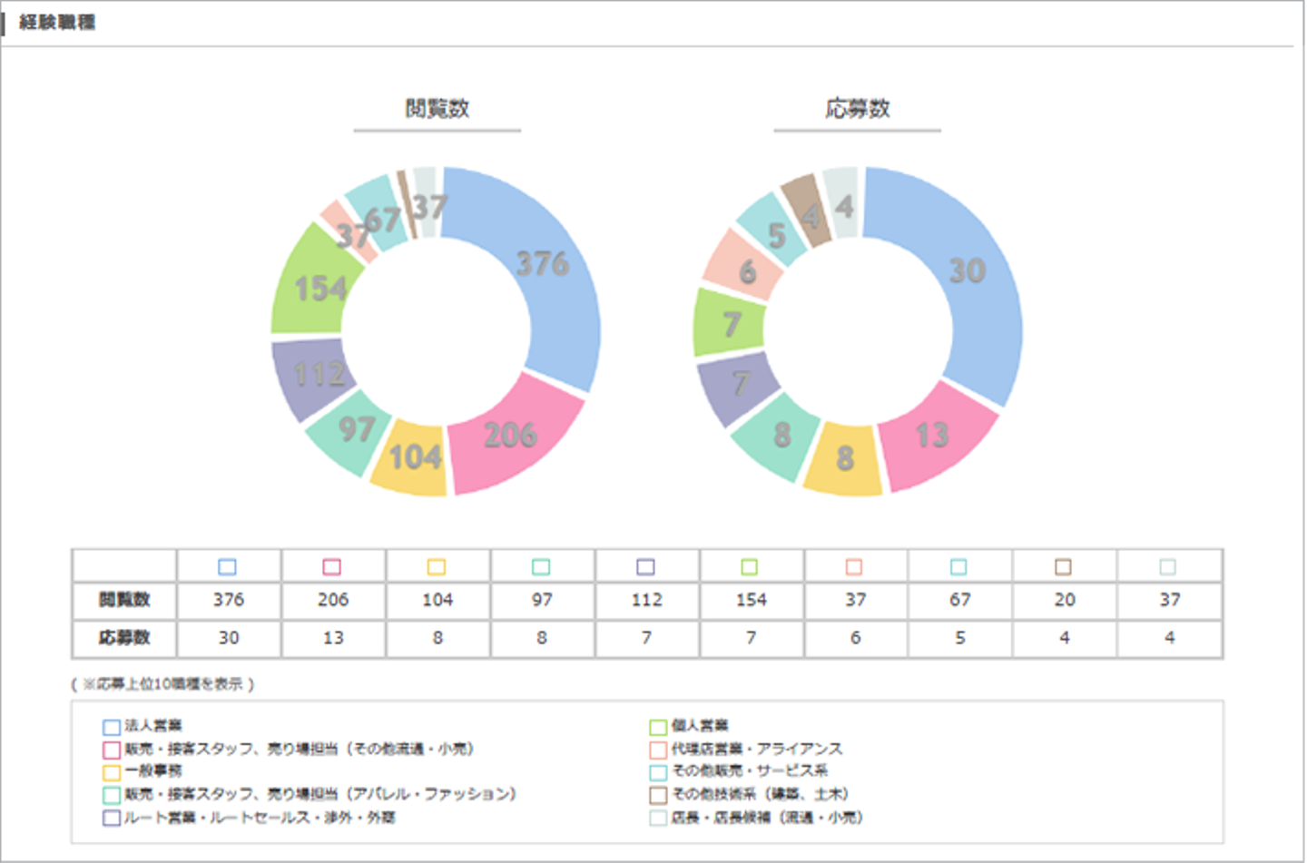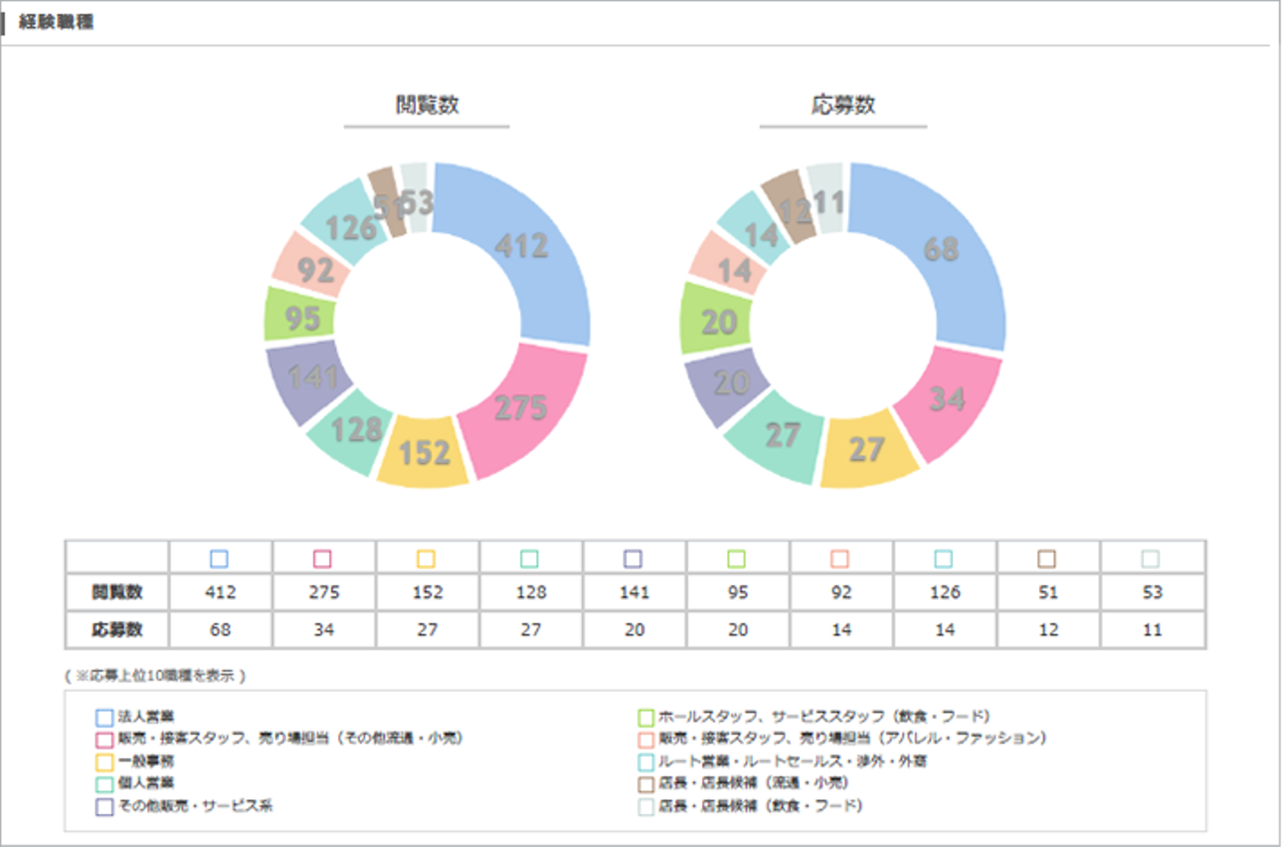 営業の募集なので法人営業や販売接客スタッフが多いですね。割合などは①も②も特に変わらないですね。