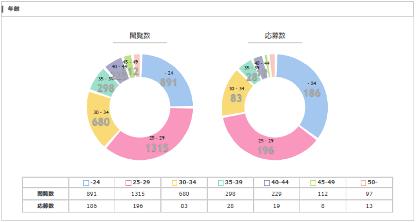 狙い通りの30歳台前後までの応募が多いですね。①と②で特に違いはなさそうです。