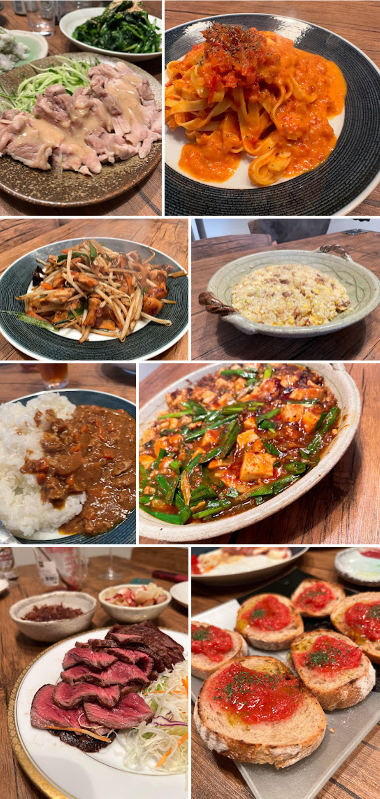 パスタはよく作りましたね、お昼に時間がない中で4-5人分作るとなると結構パスタに頼らざるを得ない感じでした。あとは味で評判良いのは麻婆豆腐とスンドゥブです。麻婆豆腐はかなり多くの人の過去最高に美味しいをいただいたので自信アリです。