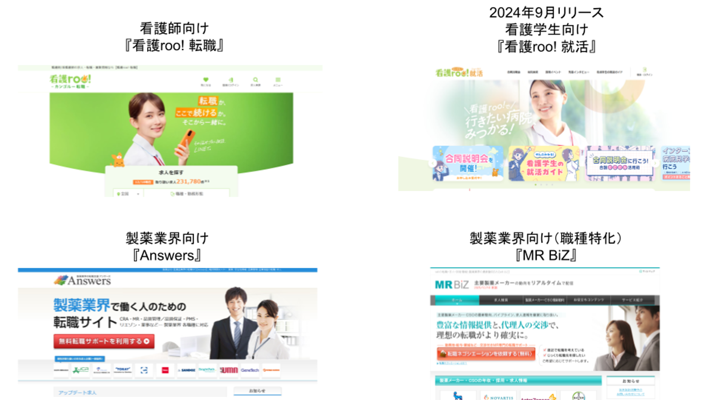 若手看護師の約9割が利用している看護師向けコミュニティサイト『看護roo!』や、看護師国家試験の受験者の約9割が利用している受験対策アプリ『看護roo! 国試』、看護師向けカレンダーアプリとしてトップクラスの業界シェアを誇る『ナスカレ』、2024年9月にスタートした看護学生向けの就活サービス『看護roo! 就活』など、看護師ライフをトータルで支えるサービス群のひとつとして、業界内での知名度を高めています。