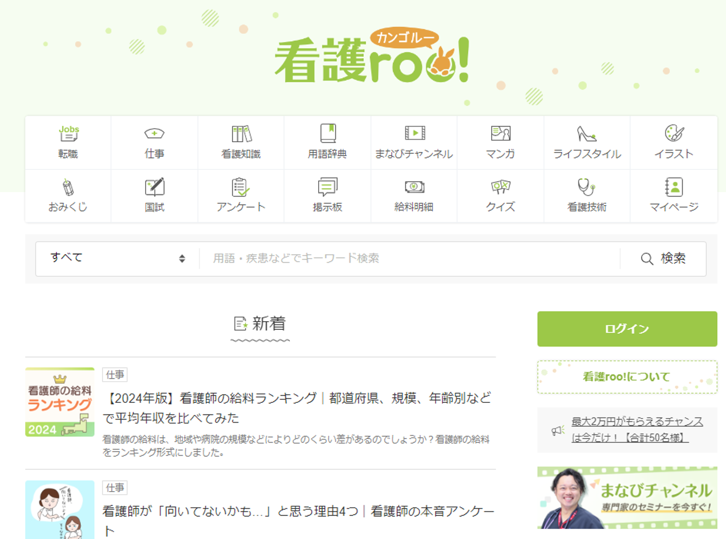 看護roo!は、看護師&看護学生に必要なコンテンツを幅広く提供する、総合メディアです。