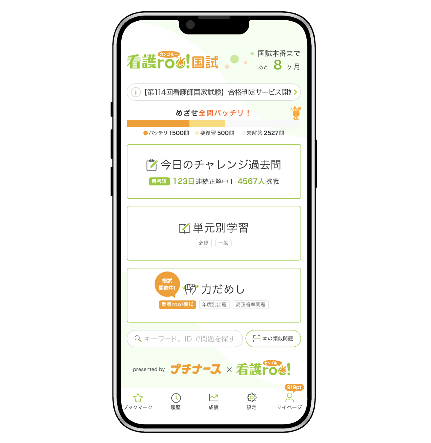 『看護roo!国試』とは、看護師になるために必要な「看護師国家試験(国試)」に合格するための、受験対策アプリです。