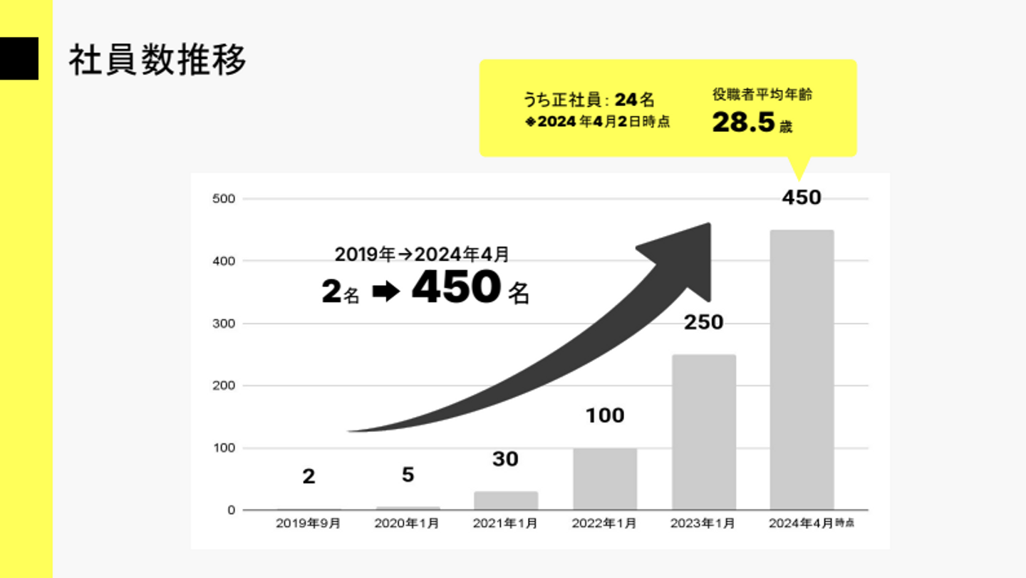 一時期はメンバー500名中450名が業務委託でした。最初の頃は正社員やインターンシップ生もいたのですが、採用プロセスに6ヶ月以上かかってしまうため「もっと早いスピードでチャレンジできる方と一緒に、スタートしたい」と思ったんです。