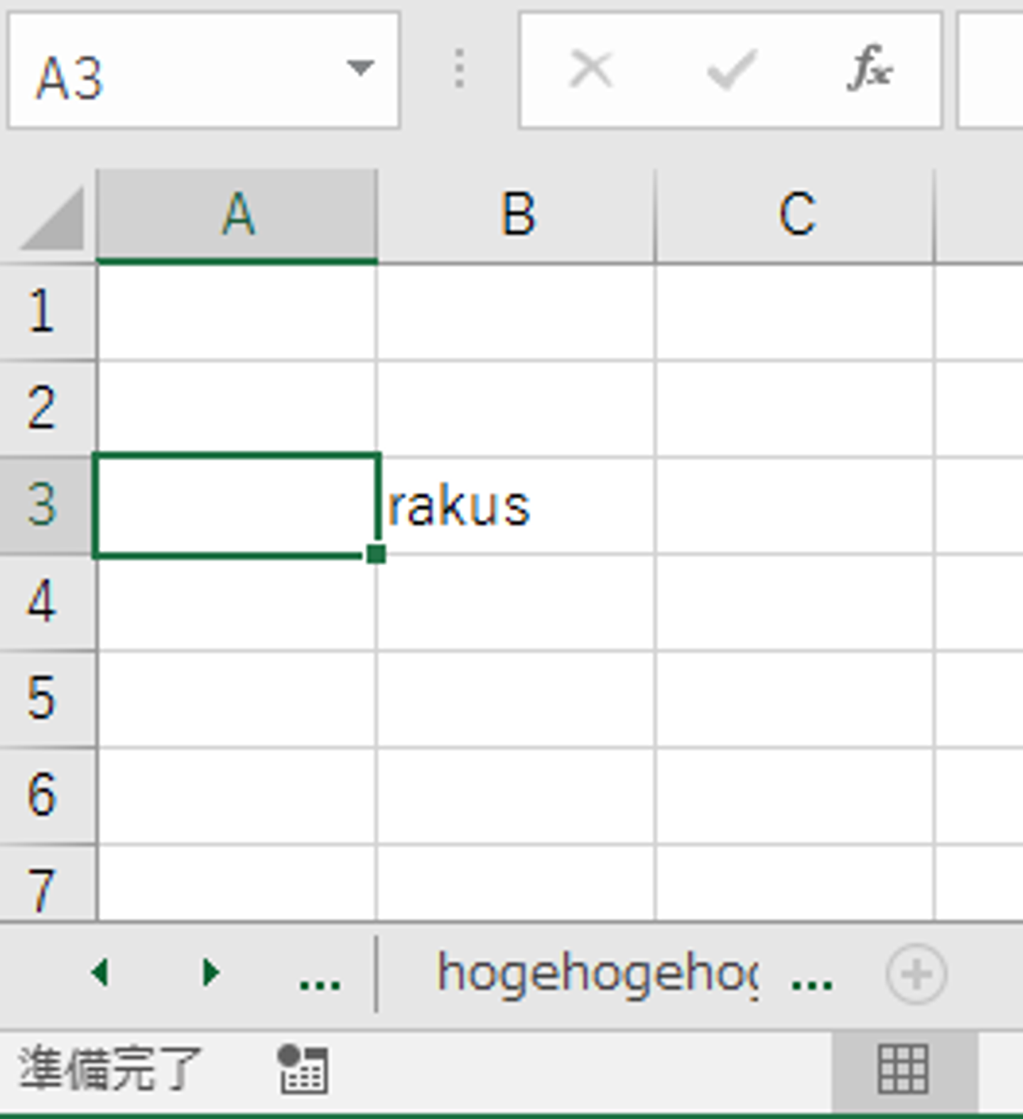 矢印キーを押すと,他のセルに移動します. 例えば,B3セルに「rakus」と入力後「←」を押すと,A3セルに移動します.