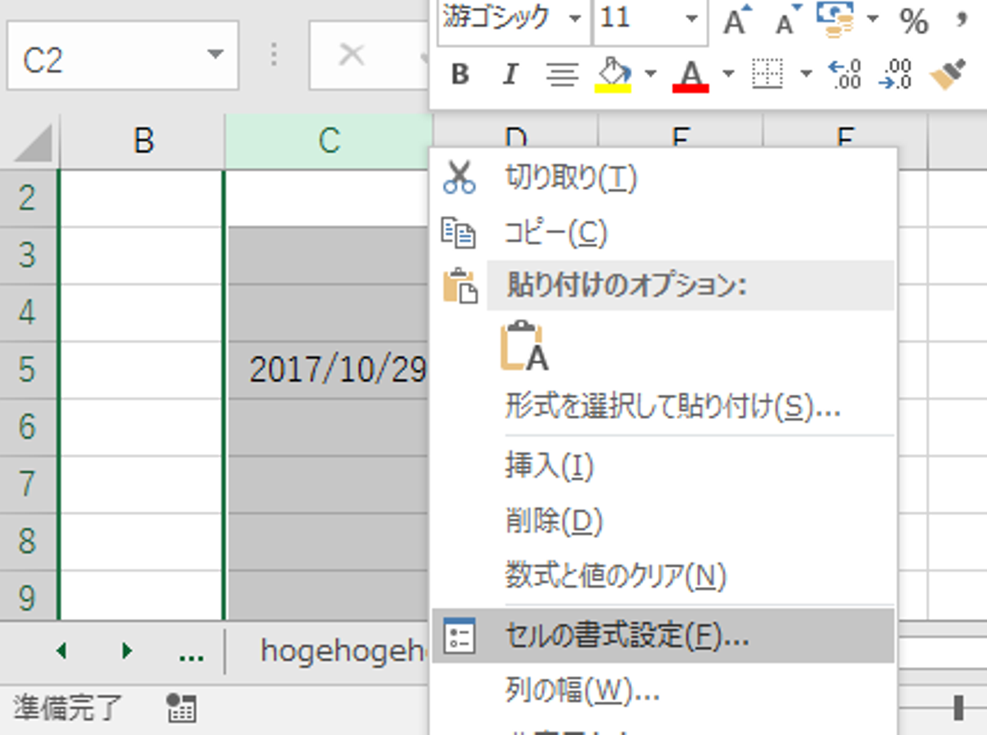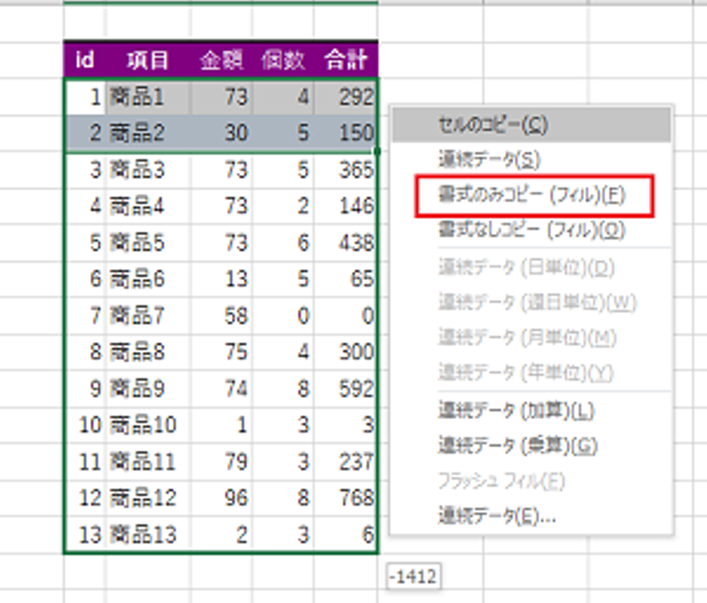 3. メニューの「書式のみのコピー(フィル)」を選択(書式がコピーされます.)