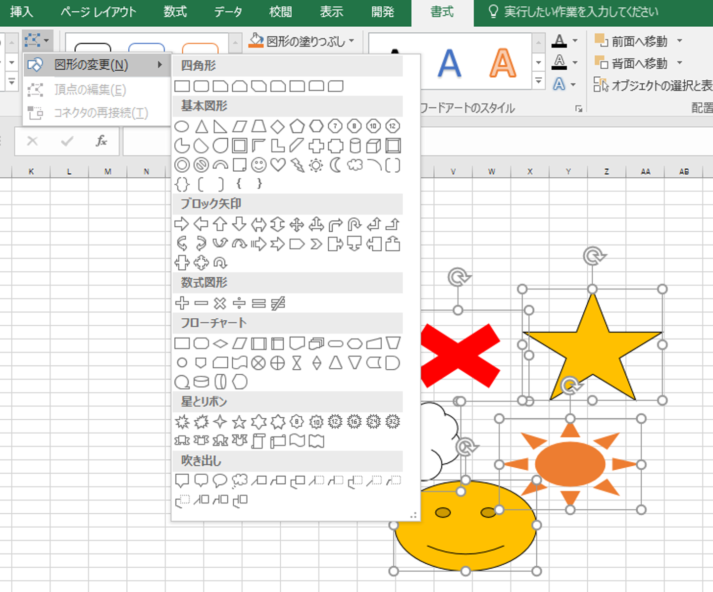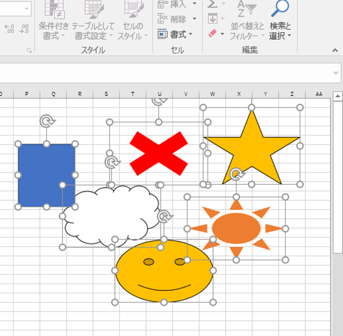 2.選択範囲をドラック/結果:ドラックした範囲内の図形が全てアクティブになる