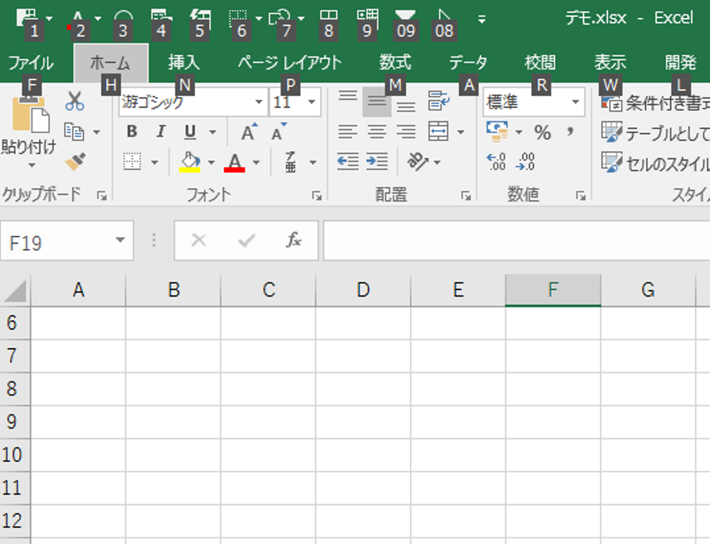 クイックアクセスツールバーに追加した機能は,マウスを使わずとも,Alt(F10) + 数字(左から順に自動で割り振られます)で使うことができます.自分の登録した機能の数字を覚えておくとより早く作業できます.