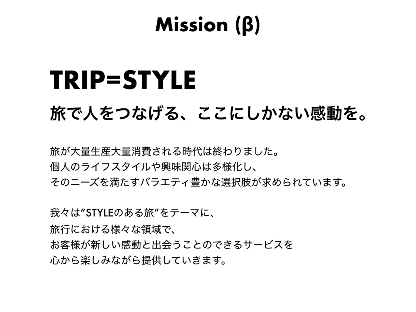 私たちは”STYLEのある旅”をテーマに、自分のスタイルに合った旅行を通じて新しい感動と出会えるように、オンライン旅行プラットフォーム上で様々なサービスを展開していきます。