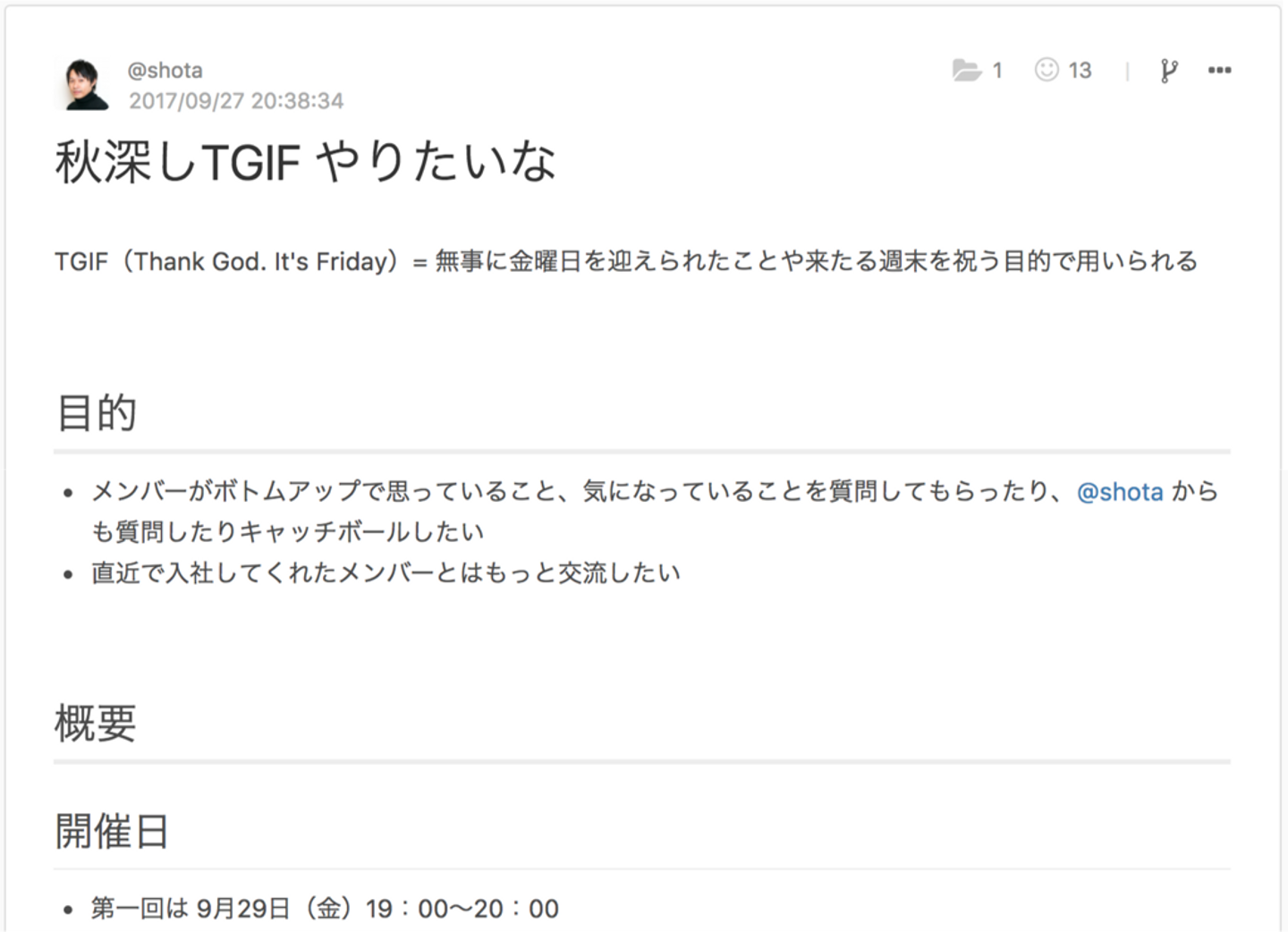 代表の堀井がQiita::teamにエントリーを書いて社内へ告知をしてくれます。