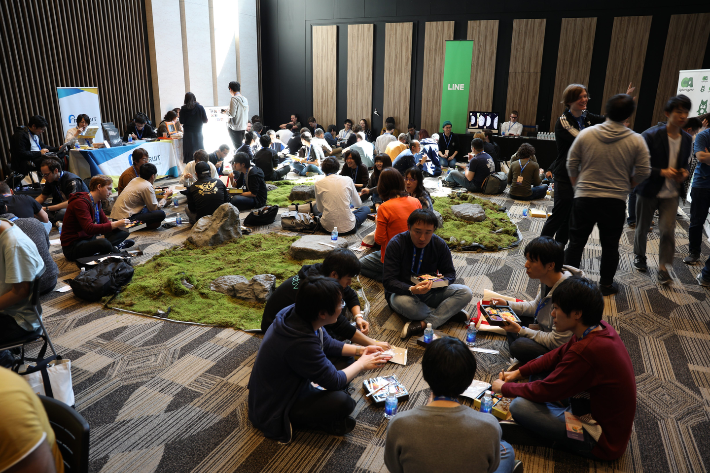企業ブースはどこも大盛況。充電スペースや畳スペースが設けられ、セッションの合間に寄るのが楽しいんですよね!