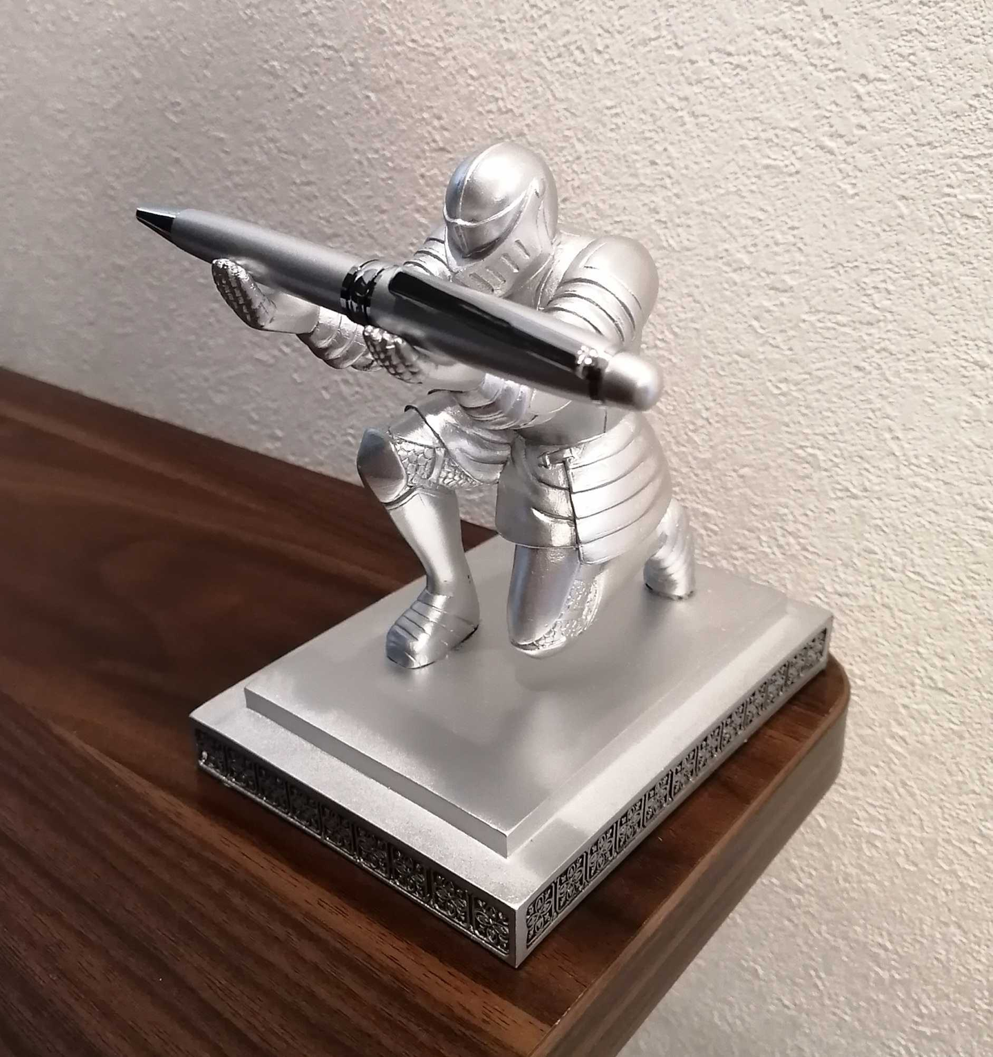 Twitterで一目惚れして買いました。かっこいいですよね。 楽天で「ペン立て 騎士」と検索すると色々と出てくるのでみなさんもぜひどうぞ。