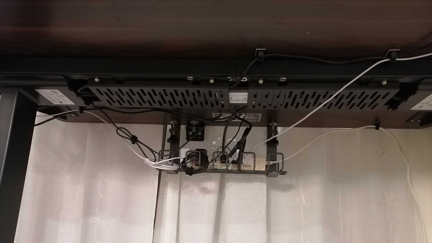 Yusukeさん:あとは、ケーブルがぐちゃぐちゃになっているのが嫌いなので、机の裏にケーブルトレーを取り付け、その上に延長コードを置いています。さらに机の裏にケーブルクリップをつけて、ケーブルをそこを通してなるべく机の裏を這わせることで、正面からはほとんどケーブルが見えなくなって気持ちいいです。
