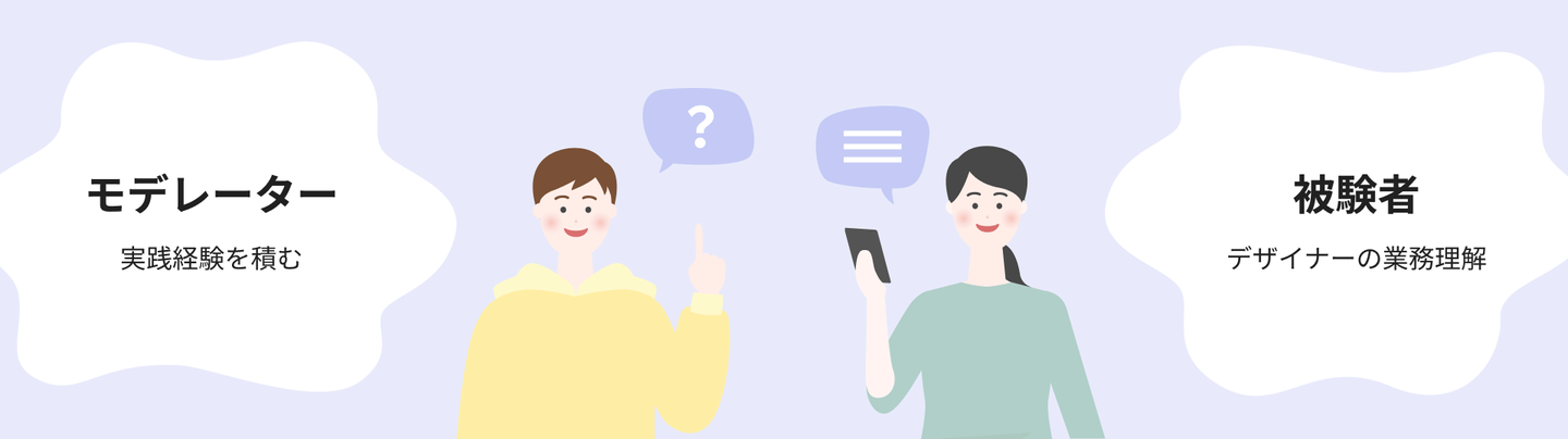 インタビューのモデレーター経験がないメンバーがラクマに新しく入ったメンバーにインタビュー研修として被験者になっていただきインタビューを体験してもらいつつ、被験者として研修を受けた新メンバーはデザイナーとの接点を作り「ラクマのデザイナーはこのような仕事もしているんだ」と理解してもらうことにもつながる仕組みです。