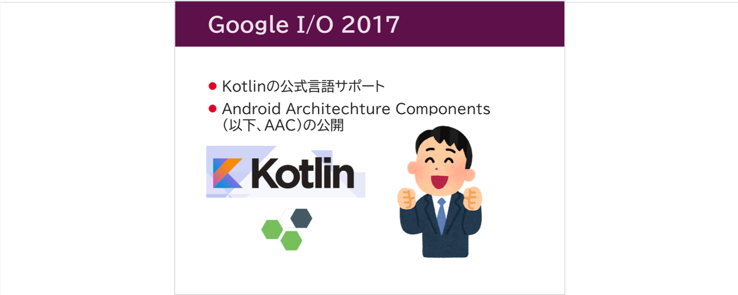 Google I/O 2017でKotlinが公式な言語として加わったのは記憶に新しいですが、