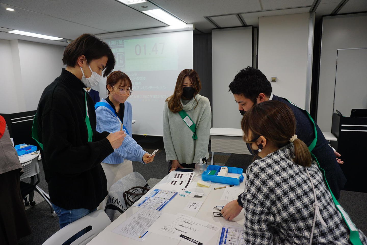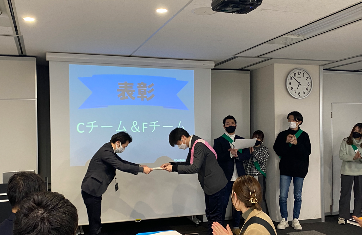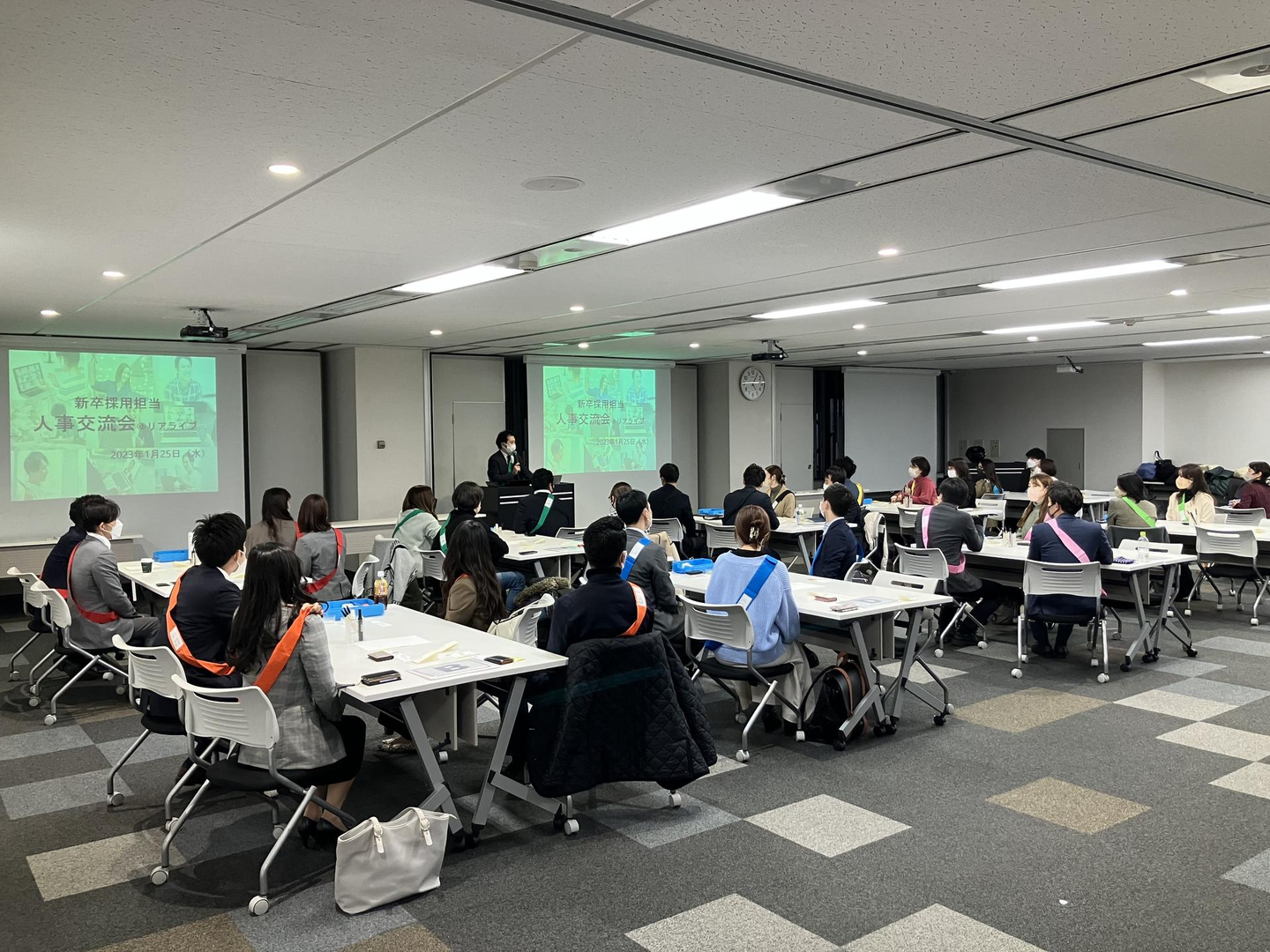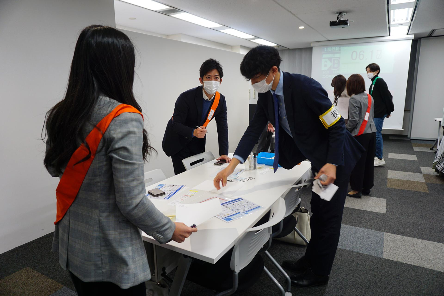 人事の方々にも学生と同じようにタスキを付けていただいています。笑