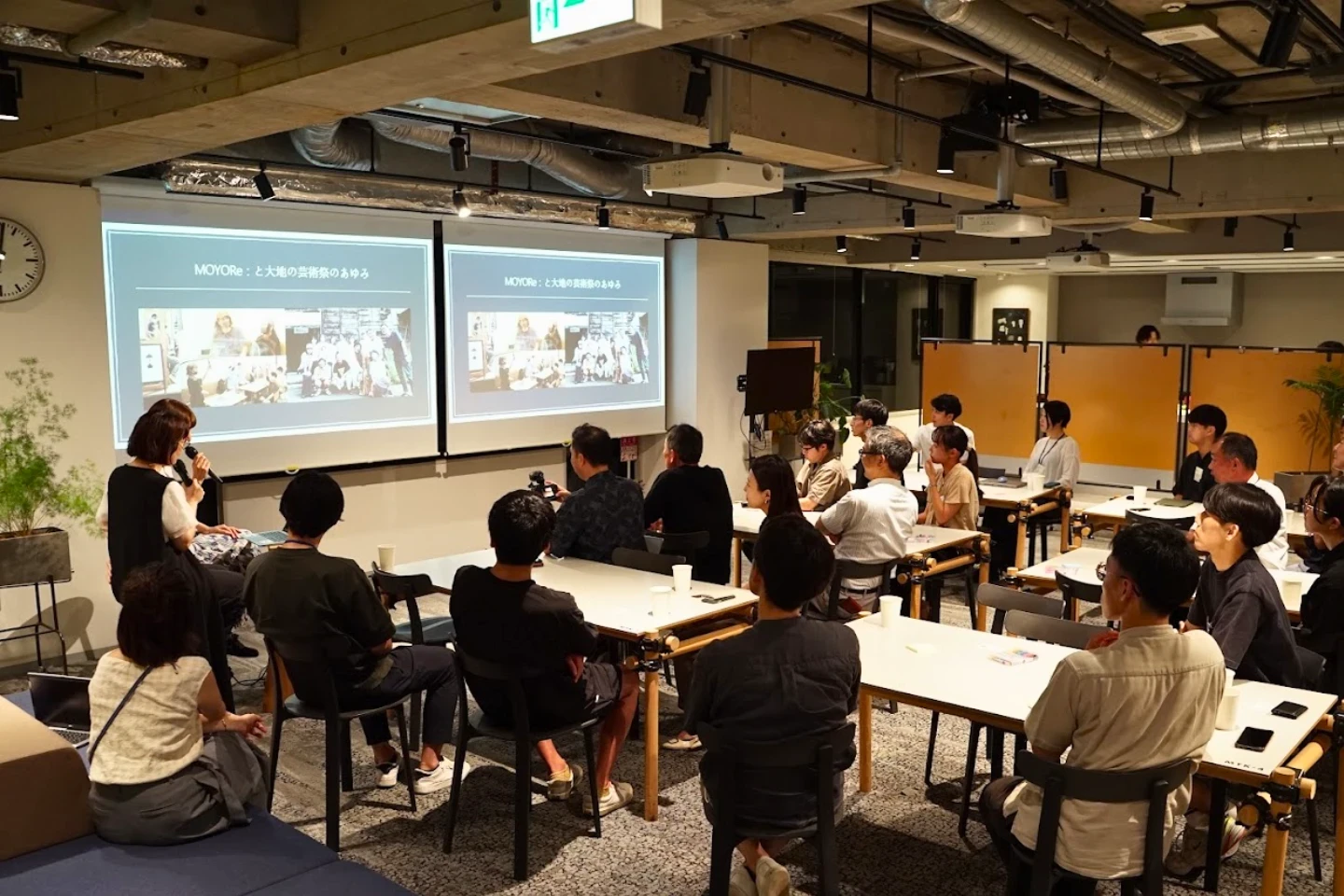 ▲リビタのプロジェクトや「くらしのスタンダード(RSS)」に関する分野について、社員や取引先の方々、内定者も交え共に学ぶ「リビタの夜会」。25新卒も内定者として参加していた。