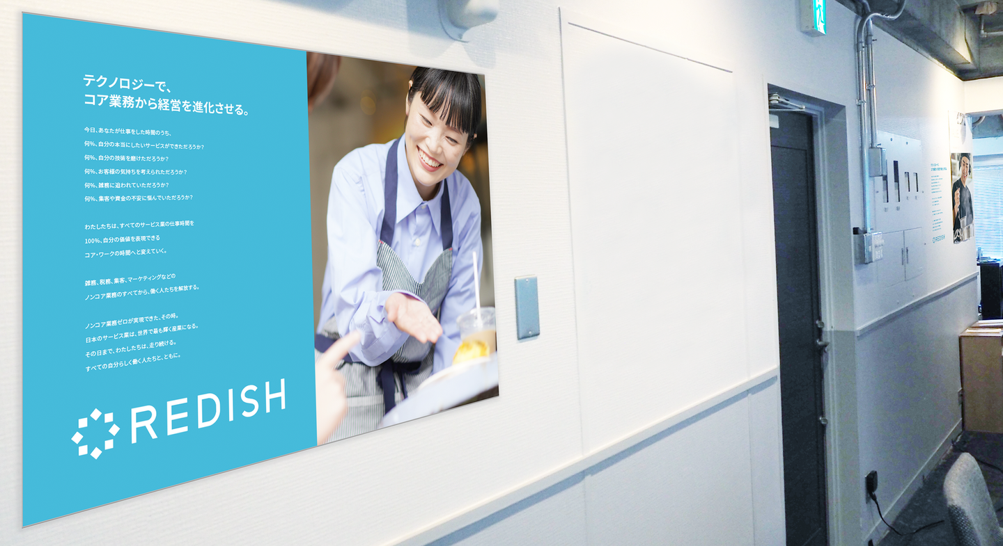 REDISHが目指すのは、現場に潜む「ノンコア業務からの解放」です。日々の業務に埋もれていた時間を、より本質的な業務に集中できるようサポートすることで、企業やそのスタッフが本当に求める仕事に注力できる環境を作ります。テクノロジーを駆使して、業務の効率化を進め、経営を進化させる手助けを行うことが、REDISHの使命です。