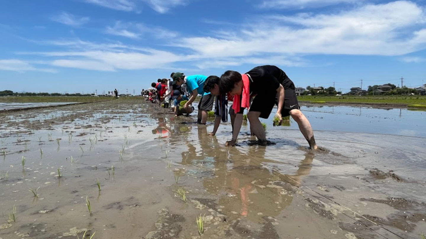 ↓こちらは“つぼみプロジェクト”での実際の田植えの様子!毎年6月頃に田植え、10月頃に稲刈りを地域の方々と行っております☆