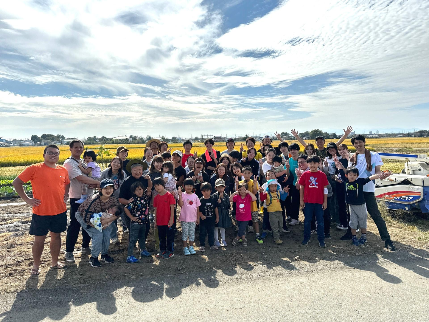※2023年収穫イベント集合写真。埼玉県鴻巣市に4反の田んぼを借りています!