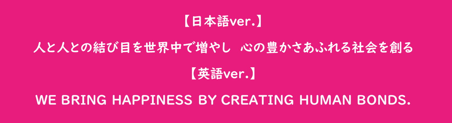 2020年始め、10周年を機に“日本⇔世界という双方向のベクトルで、リジョブを介した人と人とのつながりを良いご縁・温もりある結び目へと昇華したい”という想いを込めて、ソーシャルビジョンを 「人と人との結び目を世界中で増やし 心の豊かさあふれる社会を創る」へ刷新しました。人と人を繋ぎ、国と国を繋ぎ、可能性と可能性を繋ぎたい。そのような想いを乗せて、新ソーシャルビジョンは日本語版・英語版の双方👇を定めています。